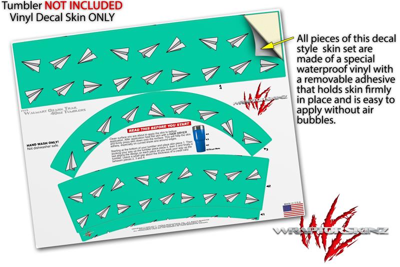 Skin Decal Wrap for Walmart Ozark Trail Tumblers 40oz Paper Planes Turquoise (TUMBLER NOT INCLUDED) by WraptorSkinz