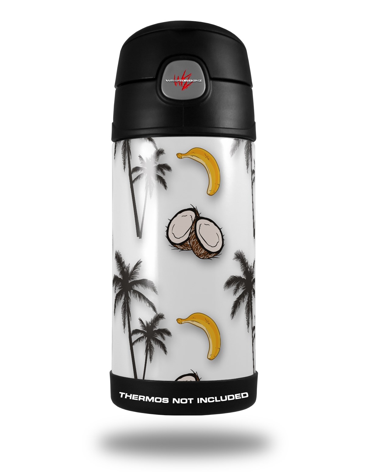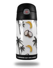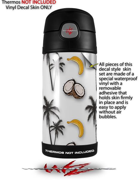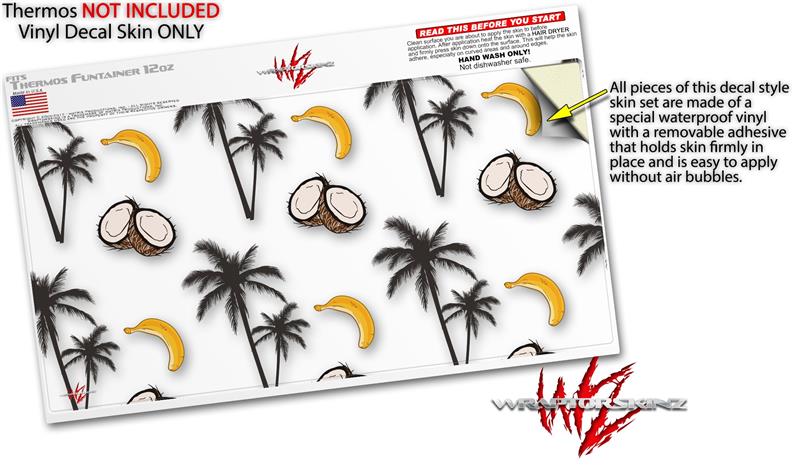 Skin Decal Wrap for Thermos Funtainer 12oz Bottle Coconuts Palm Trees and Bananas White (BOTTLE NOT INCLUDED) by WraptorSkinz