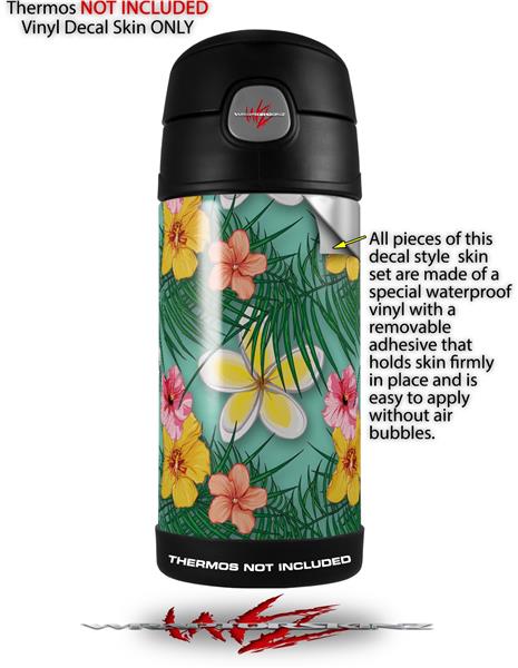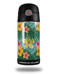Skin Decal Wrap for Thermos Funtainer 12oz Bottle Beach Flowers 02 Seafoam Green (BOTTLE NOT INCLUDED) by WraptorSkinz