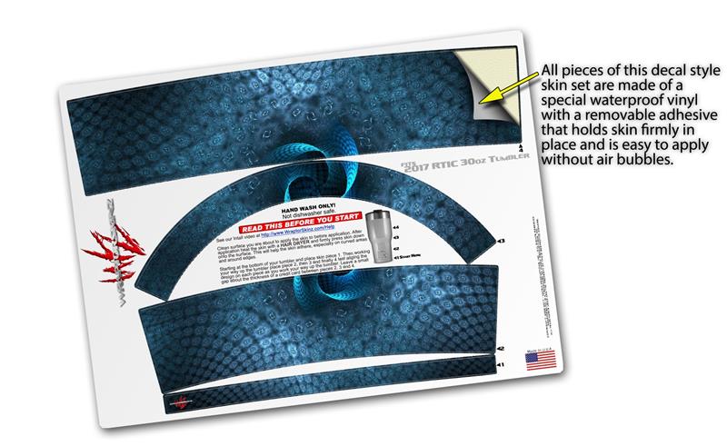 WraptorSkinz® skin wraps for 2017 RTIC Tumblers are printed using superb photo quality designs and vibrant colors printed with special fade resistant inks that last even in direct sun for years. WraptorSkinz® are a composite of two layers of commercial grade materials. The bottom layer is a soft, flexible vinyl with a special removable adhesive that is easily positioned, applied without air bubbles. Next we print the bottom layer with UV protected, fade resistant inks that deliver superb photo quality designs in vibrant colors. Finally we bond a professional grade laminate over the entire skin adding a glossy protective finish.