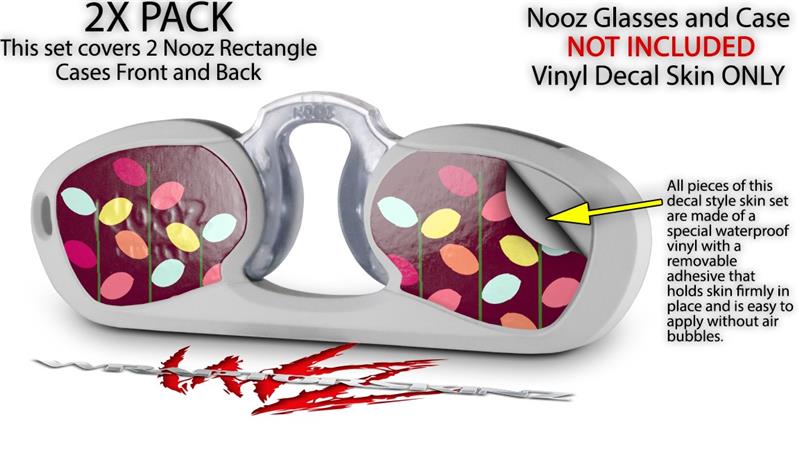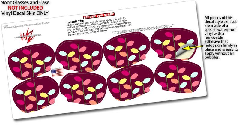 Decal Style Vinyl Skin Wrap 2 Pack for Nooz Glasses Rectangle Case Plain Leaves On Burgundy (NOOZ NOT INCLUDED) by WraptorSkinz