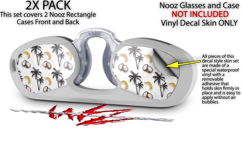 Decal Style Vinyl Skin Wrap 2 Pack for Nooz Glasses Rectangle Case Coconuts Palm Trees and Bananas White (NOOZ NOT INCLUDED) by WraptorSkinz