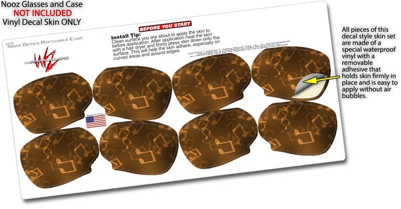 Decal Style Vinyl Skin Wrap 2 Pack for Nooz Glasses Rectangle Case Bokeh Music Orange (NOOZ NOT INCLUDED) by WraptorSkinz