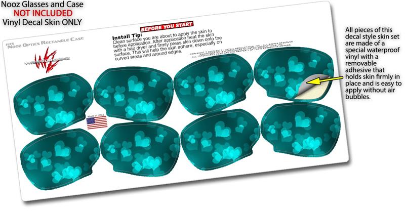 Decal Style Vinyl Skin Wrap 2 Pack for Nooz Glasses Rectangle Case Bokeh Hearts Neon Teal (NOOZ NOT INCLUDED) by WraptorSkinz