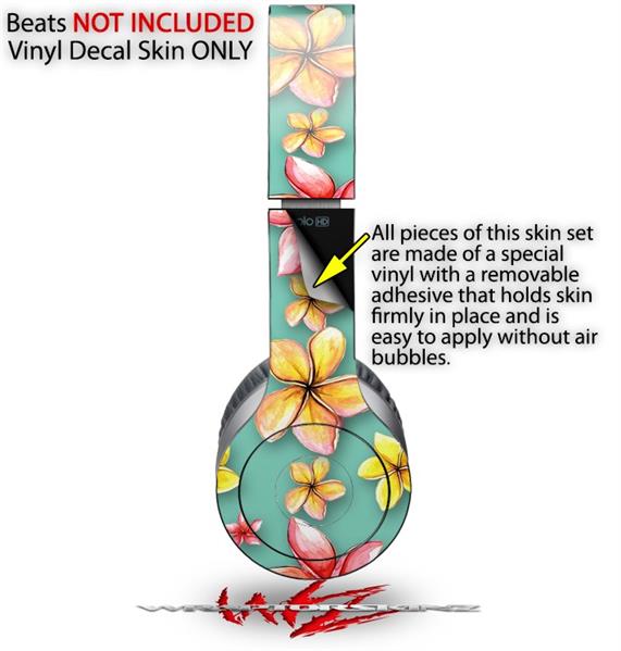 WraptorSkinz Skin Decal Wrap compatible with Beats Solo HD (Original) Beach Flowers Seafoam Green (HEADPHONES NOT INCLUDED)