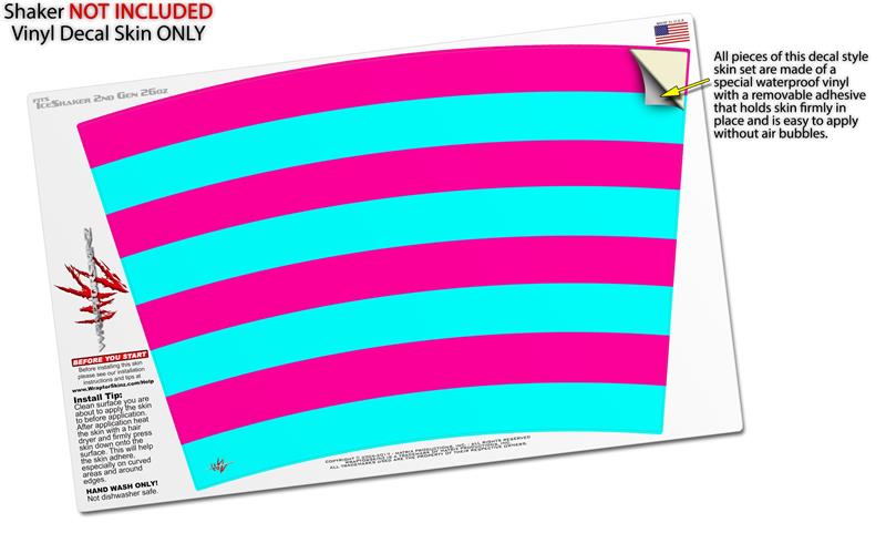 Skin Wrap Decal for IceShaker 2nd Gen 26oz Psycho Stripes Neon Teal and Hot Pink (SHAKER NOT INCLUDED)