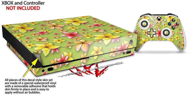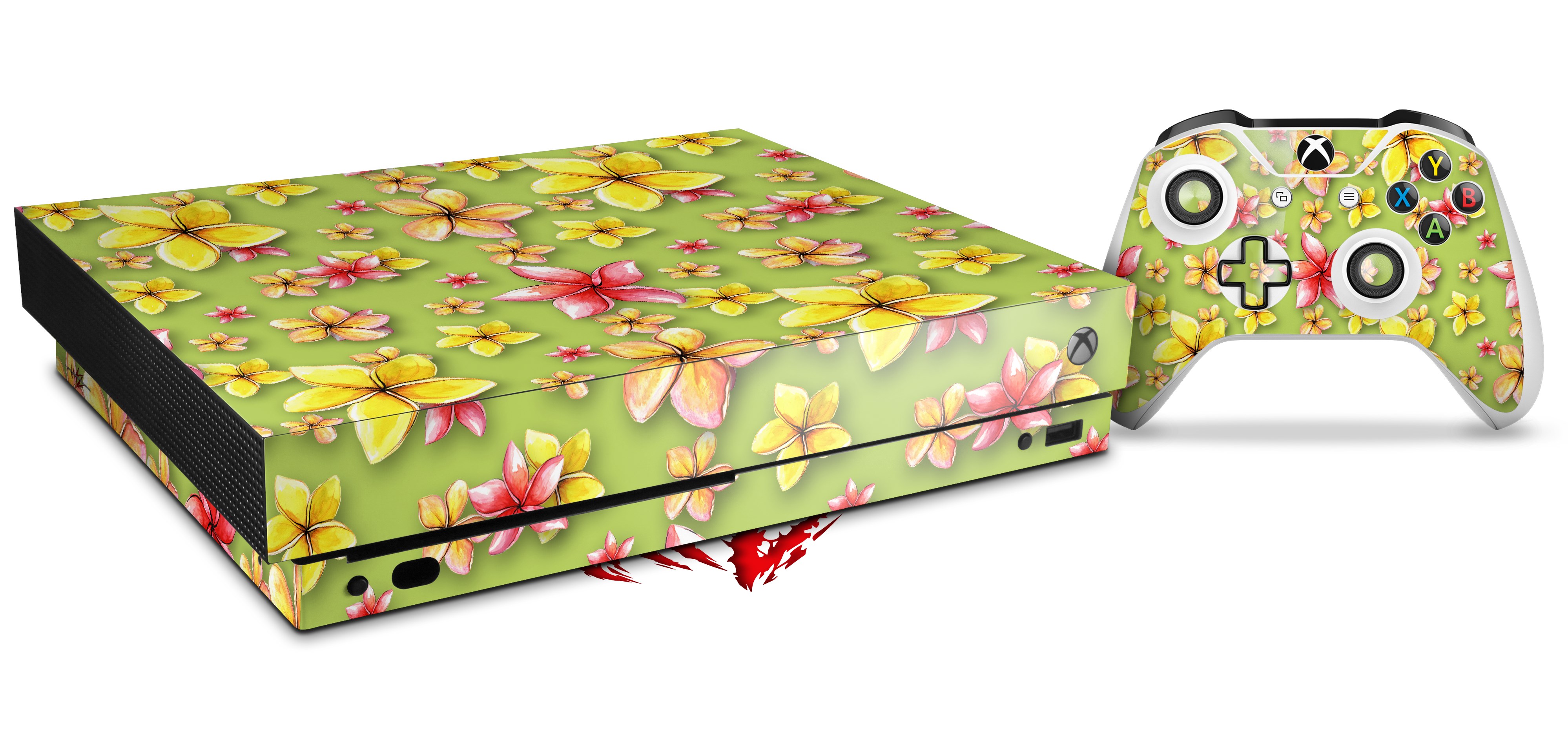 Skin Wrap for XBOX One X Console and Controller Beach Flowers Sage Green