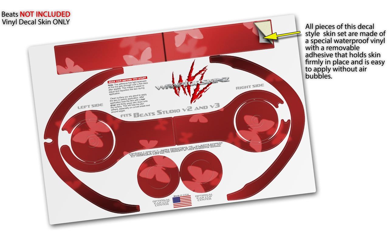 WraptorSkinz Skin Decal Wrap compatible with Beats Studio 2 and 3 Wired and Wireless Headphones Bokeh Butterflies Red Skin Only (HEADPHONES NOT INCLUDED)