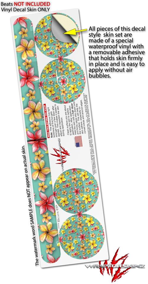 WraptorSkinz Skin Decal Wrap compatible with Beats EP Headphones Beach Flowers Seafoam Green Skin Only HEADPHONES NOT INCLUDED
