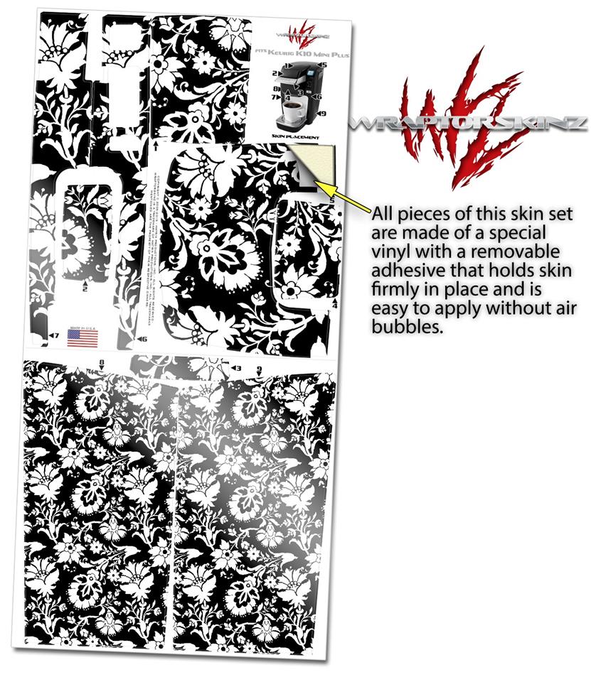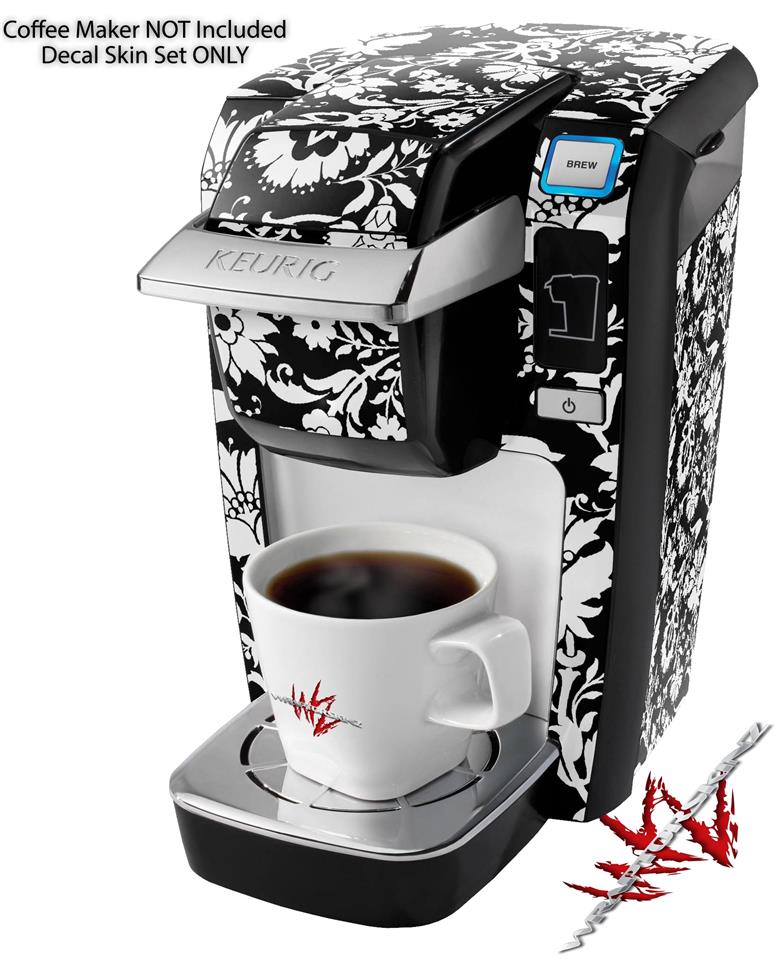 Decal Style Vinyl Skin compatible with Keurig K10 / K15 Mini Plus Coffee Makers Black and White Flower (KEURIG NOT INCLUDED)