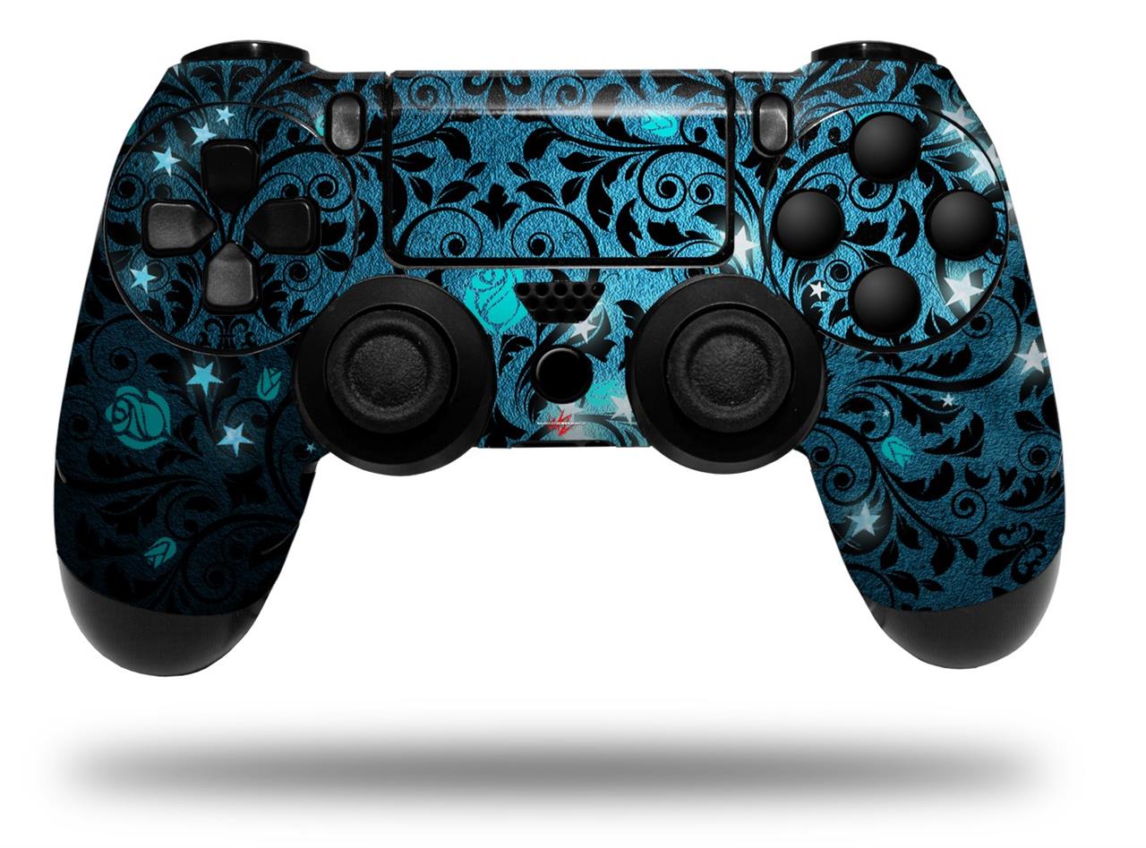 WraptorSkinz Skin compatible with Sony PS4 Dualshock Controller PlayStation 4 Original Slim and Pro Blue Flower Bomb Starry Night (CONTROLLER NOT INCLUDED)