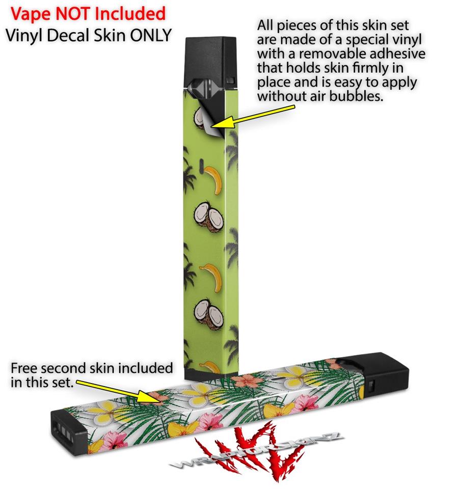 Skin Decal Wrap 2 Pack for Juul Vapes Coconuts Palm Trees and Bananas Sage Green JUUL NOT INCLUDED