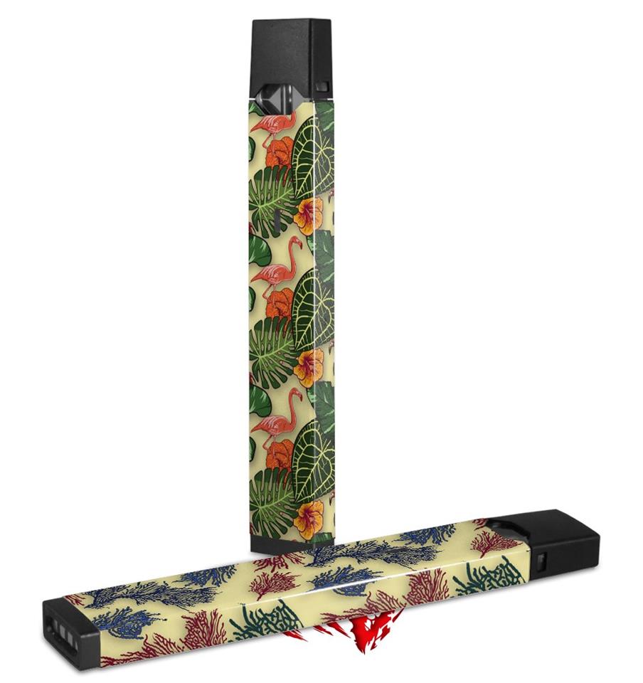 Skin Decal Wrap 2 Pack for Juul Vapes Famingos and Flowers Yellow Sunshine JUUL NOT INCLUDED
