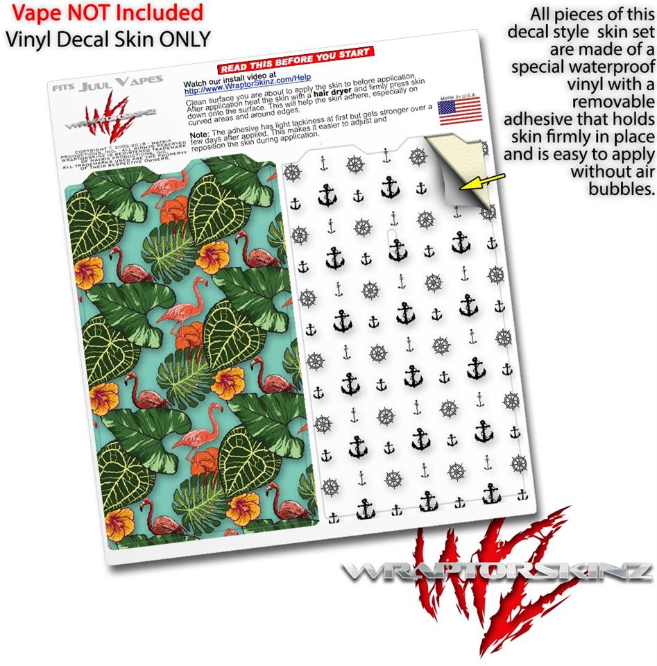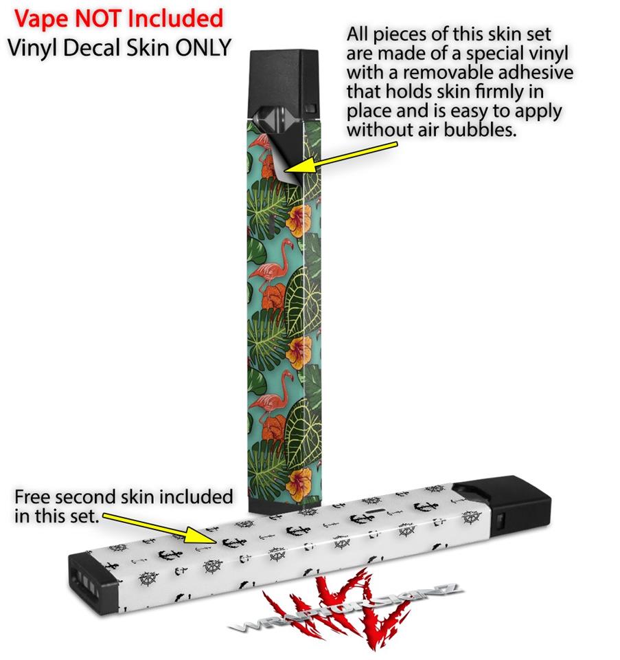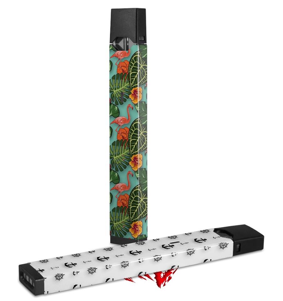 Skin Decal Wrap 2 Pack for Juul Vapes Famingos and Flowers Seafoam Green JUUL NOT INCLUDED