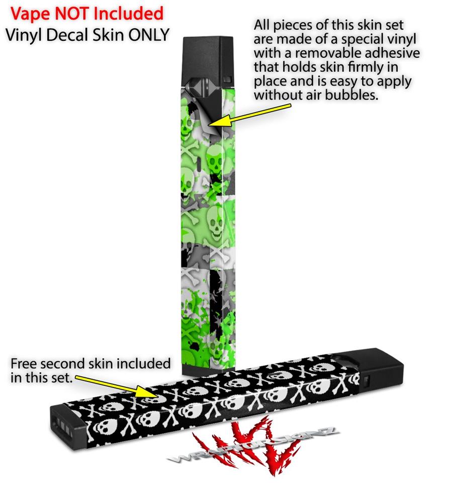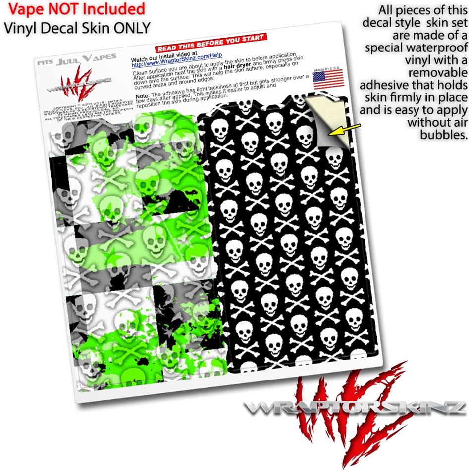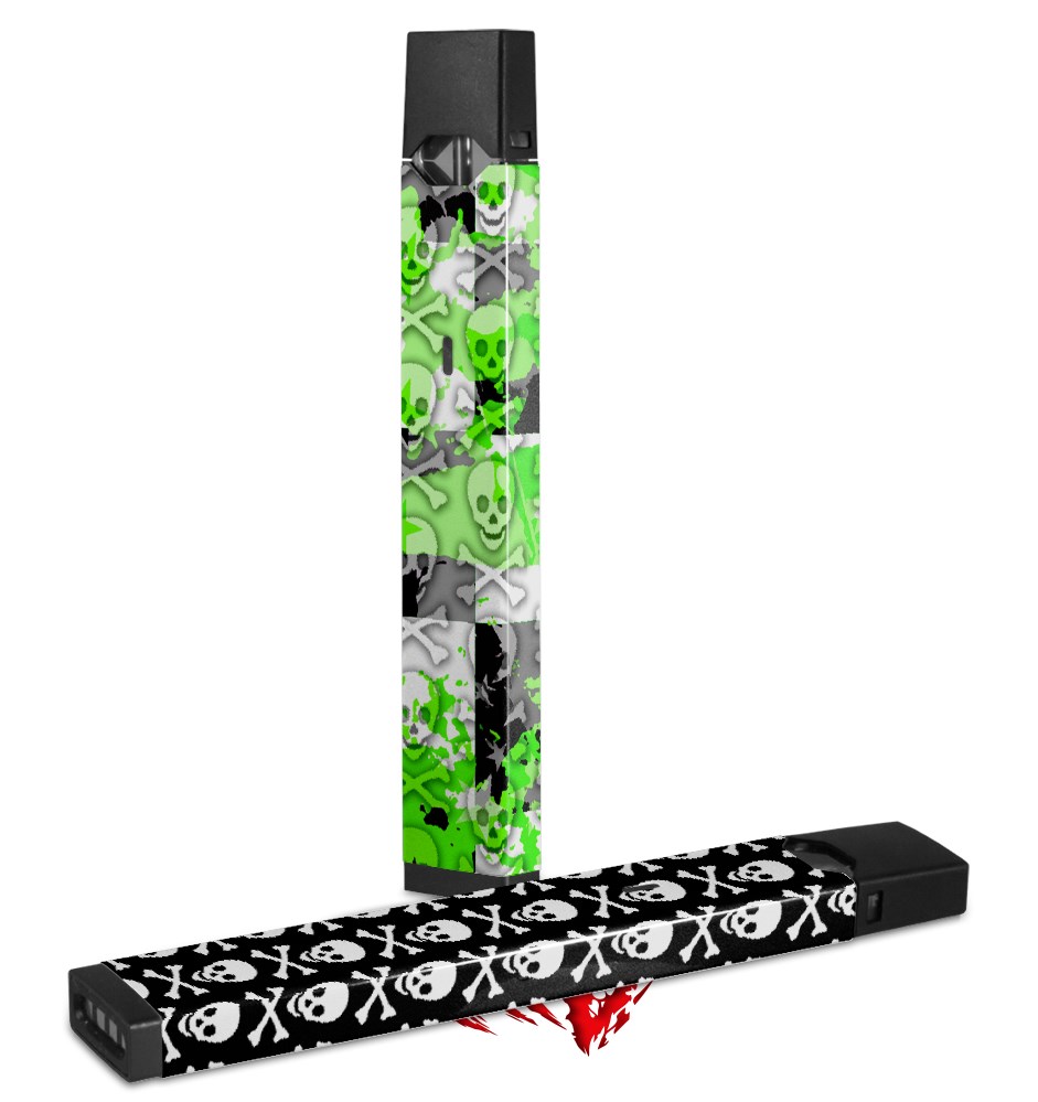 Skin Decal Wrap 2 Pack for Juul Vapes Checker Skull Splatter Green JUUL NOT INCLUDED