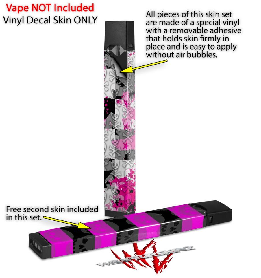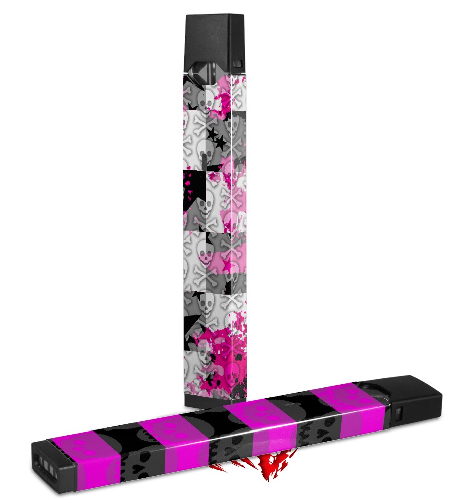 Skin Decal Wrap 2 Pack for Juul Vapes Checker Skull Splatter Pink JUUL NOT INCLUDED