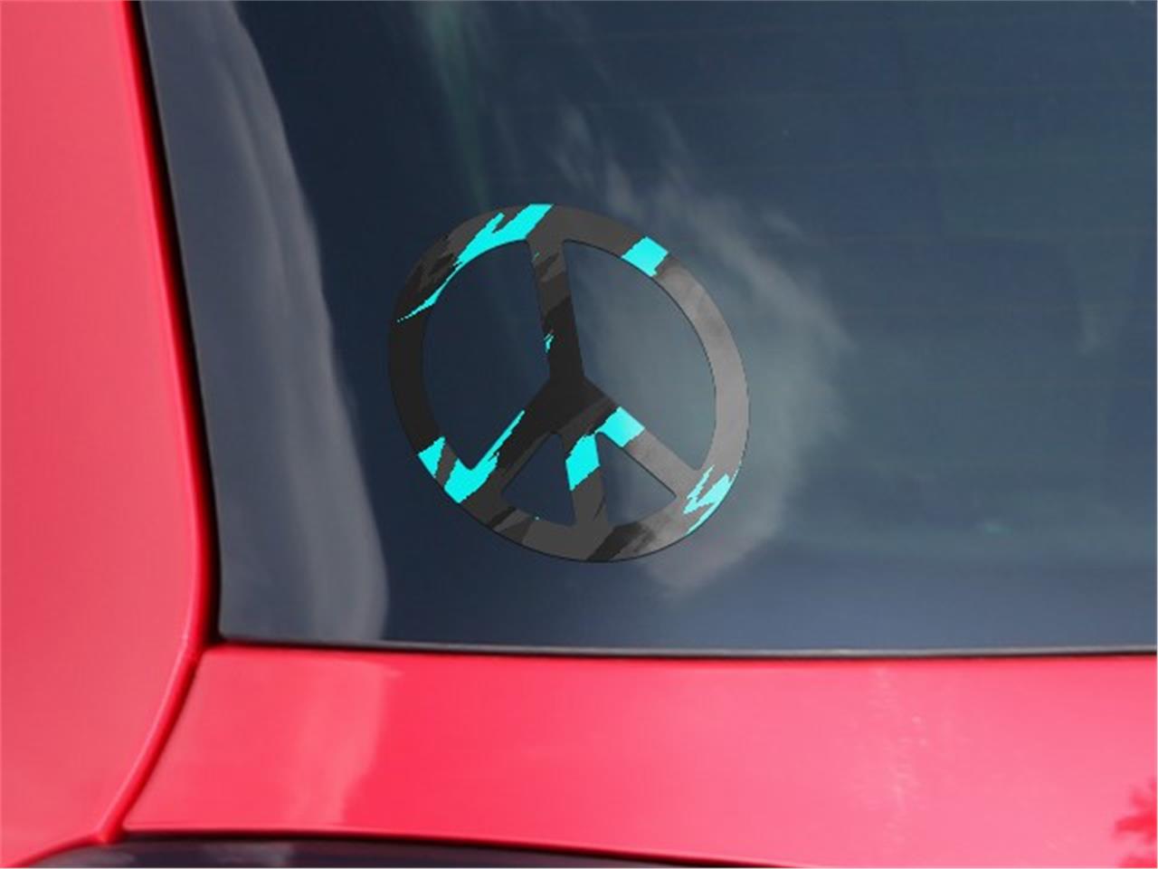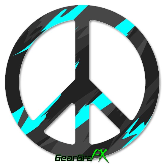 Jagged Camo Neon Teal - Peace Sign Car Window Decal 6 x 6 inches