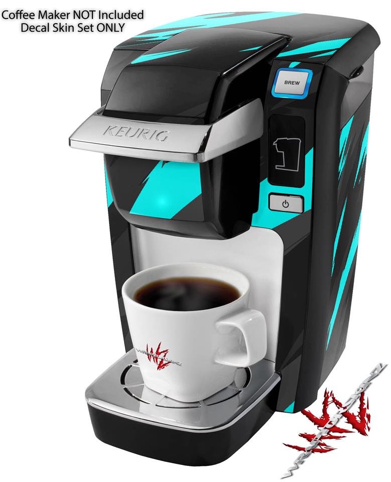 Decal Style Vinyl Skin compatible with Keurig K10 / K15 Mini Plus Coffee Makers Jagged Camo Neon Teal (KEURIG NOT INCLUDED)