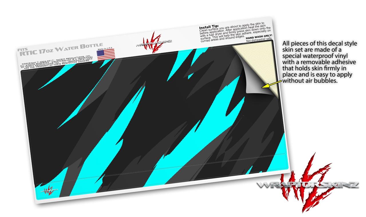 Skin Decal Wrap for RTIC Water Bottle 17oz Jagged Camo Neon Teal (BOTTLE NOT INCLUDED)