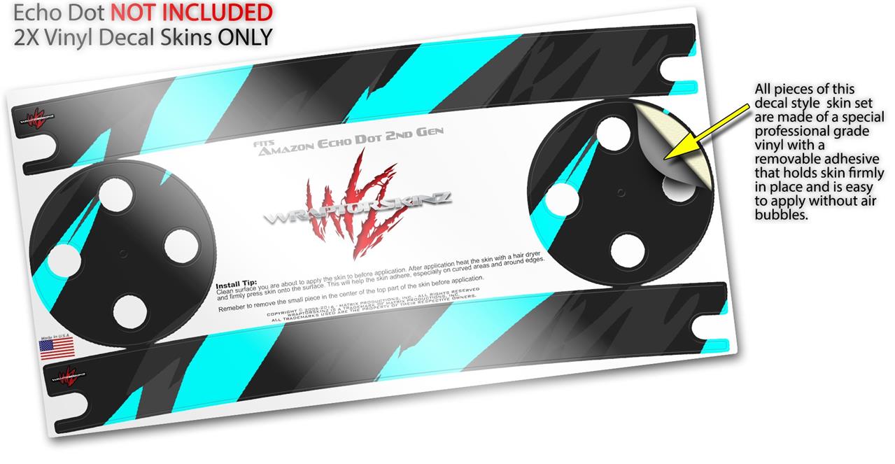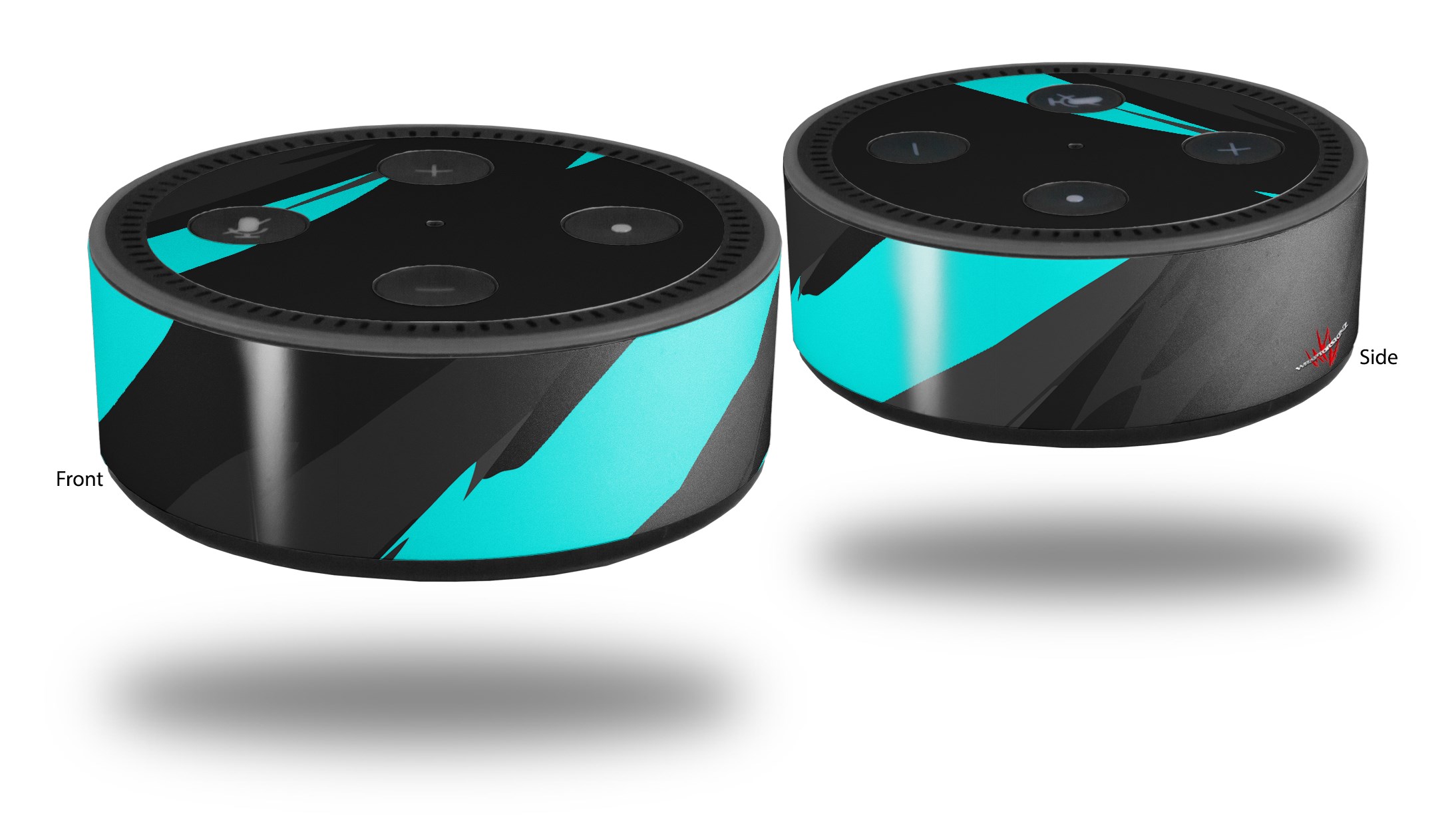 Skin Wrap Decal Set 2 Pack for Amazon Echo Dot 2 - Jagged Camo Neon Teal (2nd Generation ONLY - Echo NOT INCLUDED)