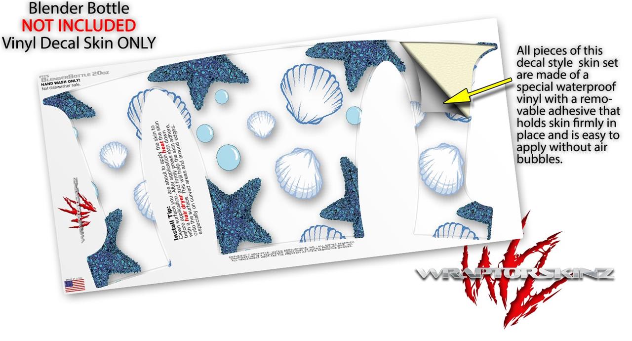 Decal Style Skin Wrap works with Blender Bottle 20oz Starfish and Sea Shells White (BOTTLE NOT INCLUDED)