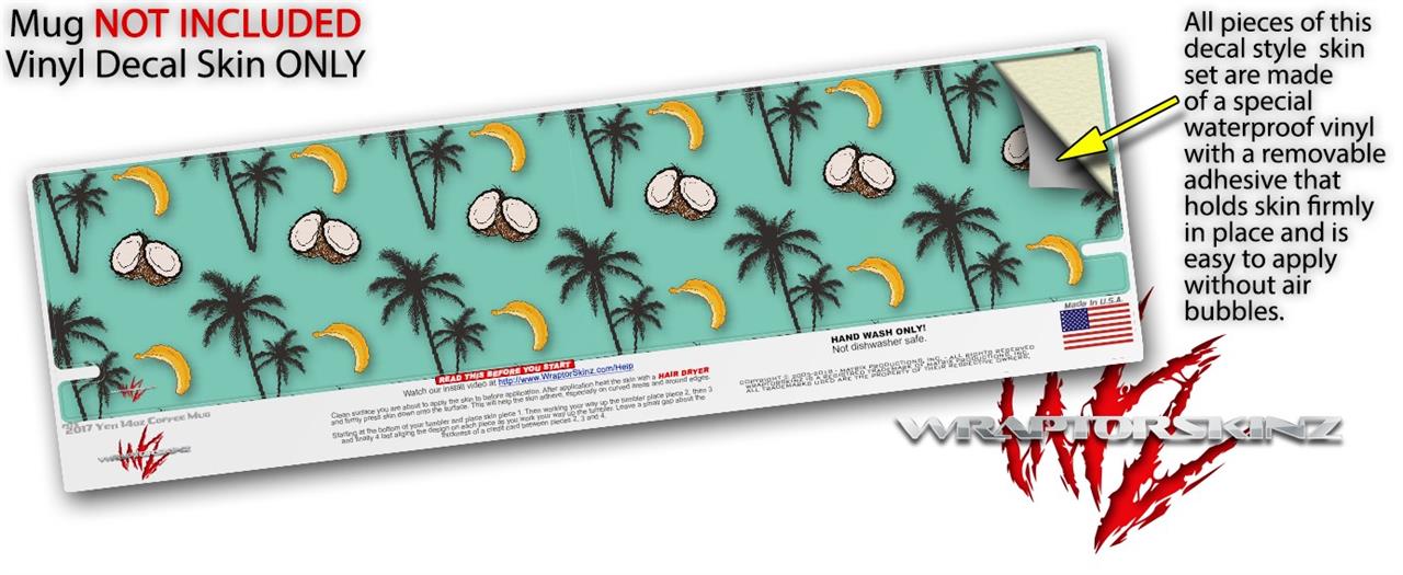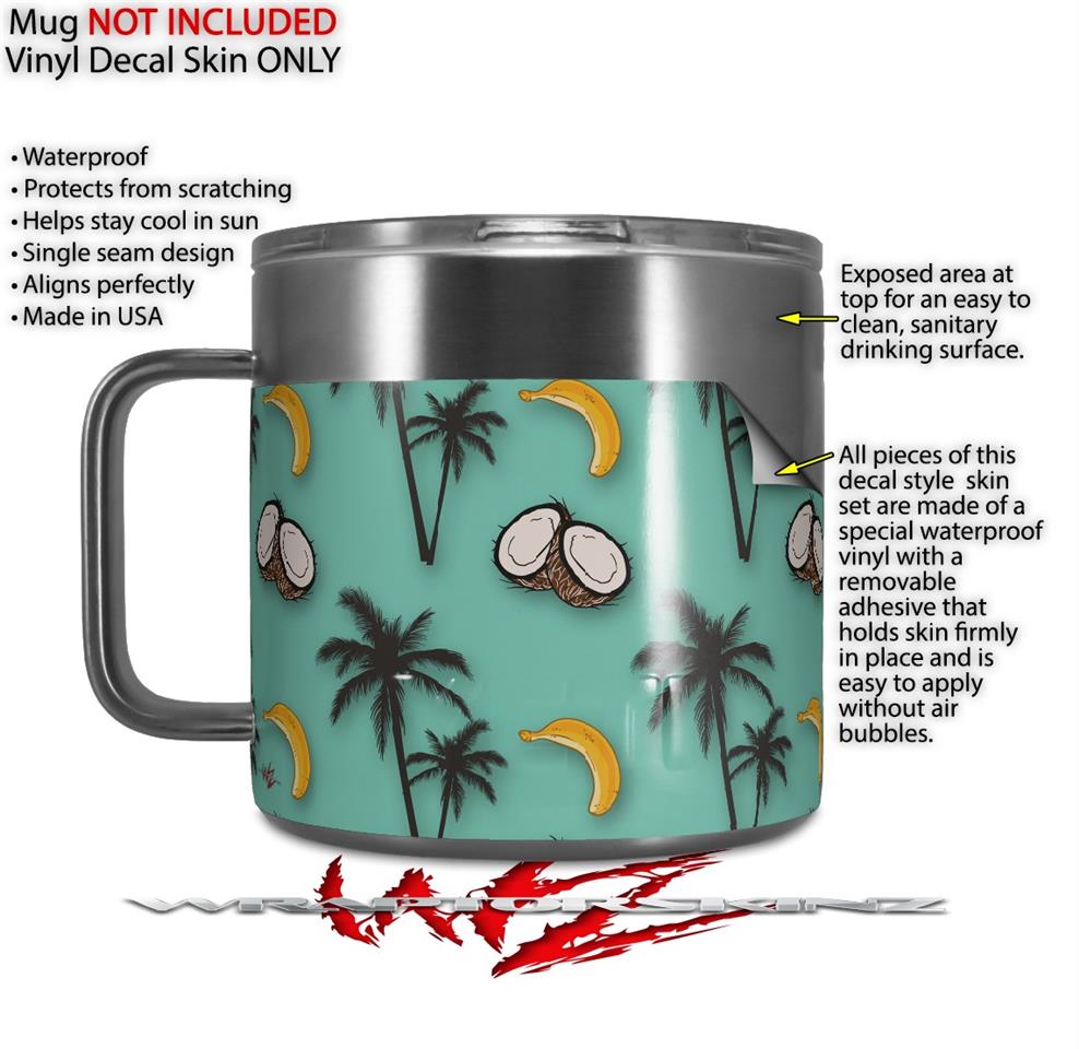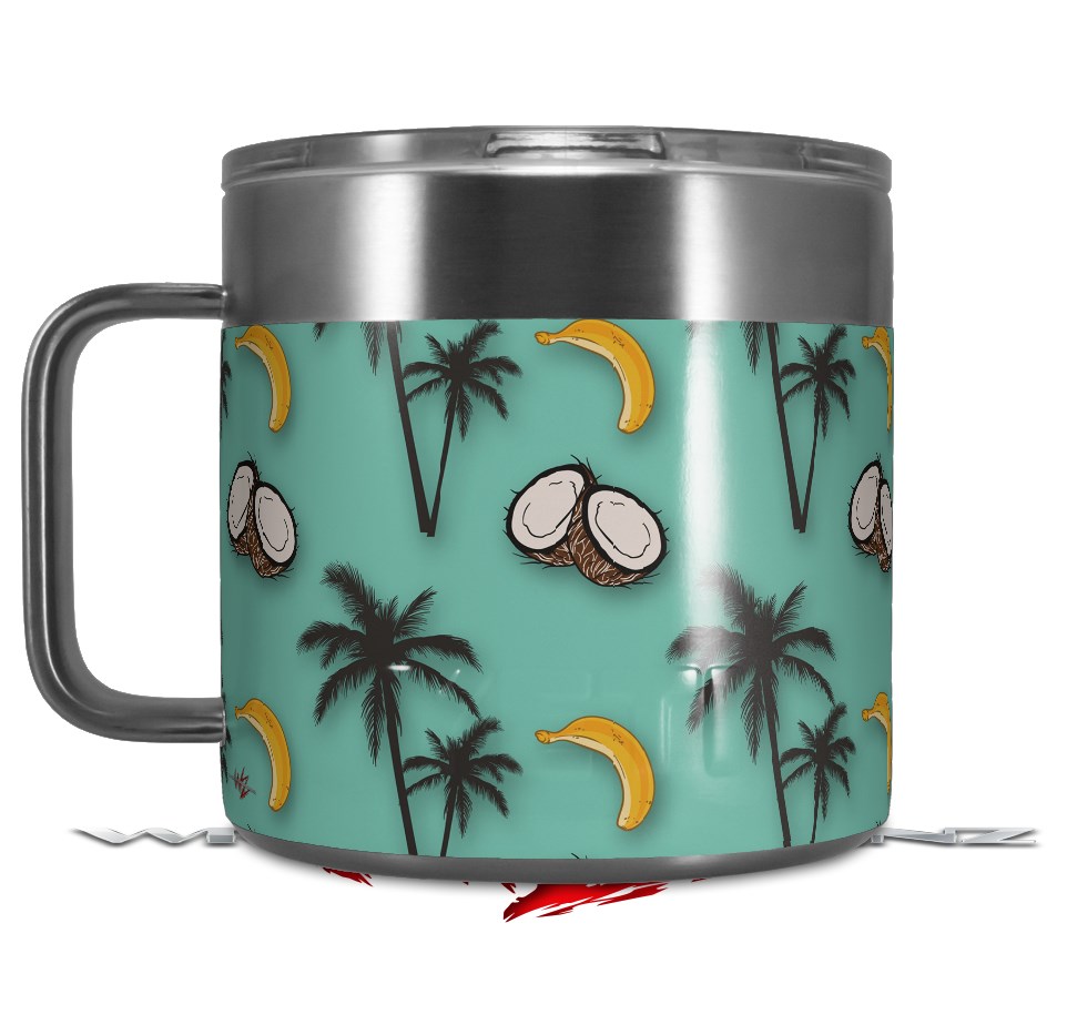 Skin Decal Wrap for Yeti Coffee Mug 14oz Coconuts Palm Trees and Bananas Seafoam Green - 14 oz CUP NOT INCLUDED by WraptorSkinz