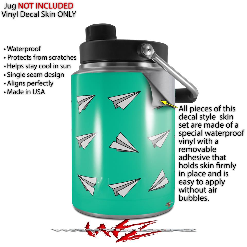Skin Decal Wrap for Yeti Half Gallon Jug Paper Planes Turquoise - JUG NOT INCLUDED by WraptorSkinz