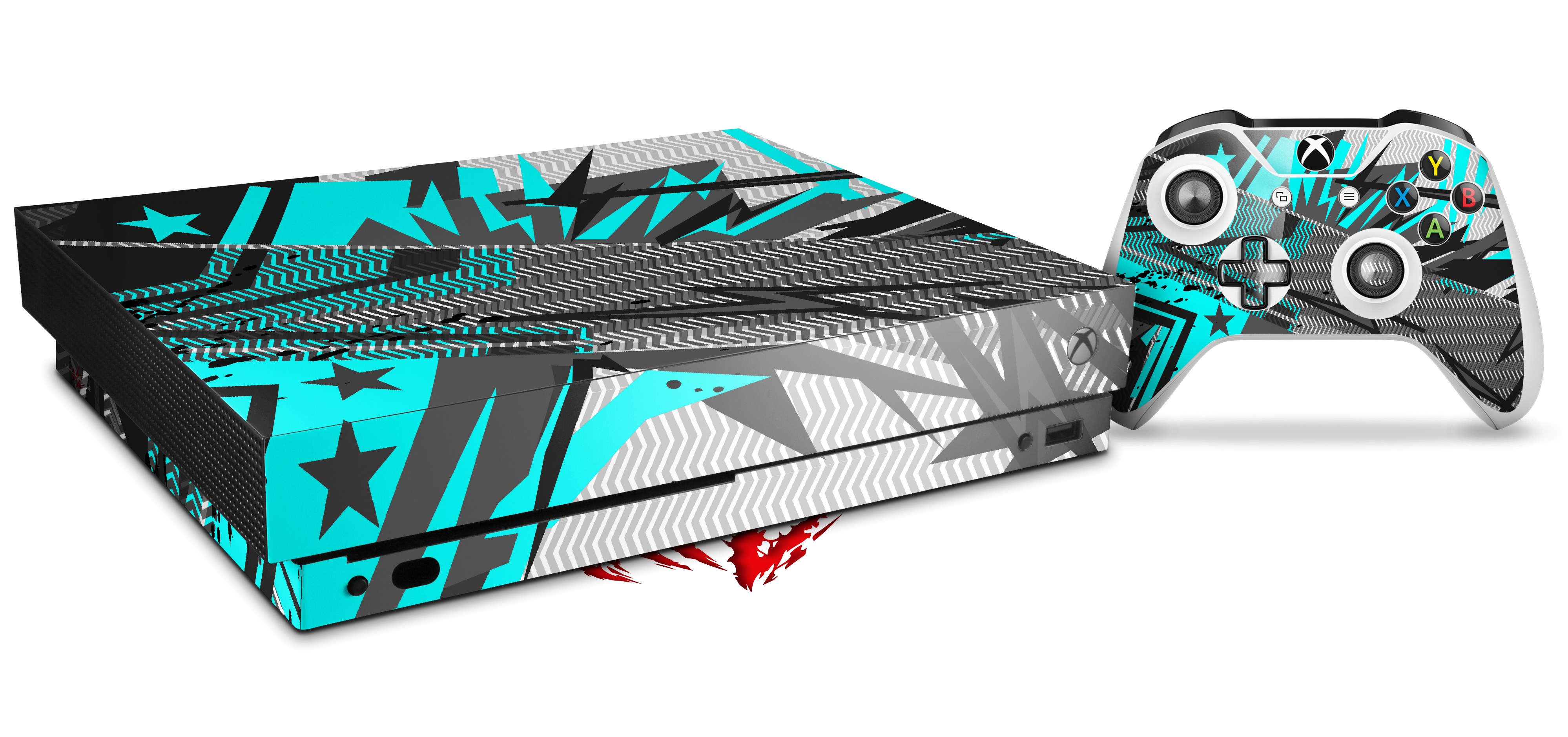 Skin Wrap for XBOX One X Console and Controller Baja 0032 Neon Teal