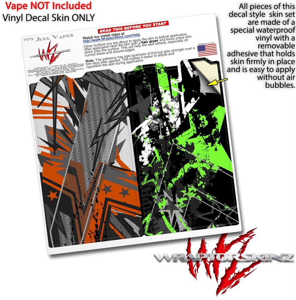 WraptorSkinz® skin wraps are printed using superb photo quality designs and vibrant colors printed with special fade resistant inks that last even in direct sun for years. WraptorSkinz are a composite of two layers of commercial grade materials. The bottom layer is a soft, flexible vinyl with a special removable adhesive that is easily positioned, applied without air bubbles. Next we print the bottom layer with UV protected, fade resistant inks that deliver superb photo quality designs in vibrant colors. Finally we bond a professional grade laminate over the entire skin adding a glossy protective finish. This product is not affiliated with or endorsed by the Juul brand.