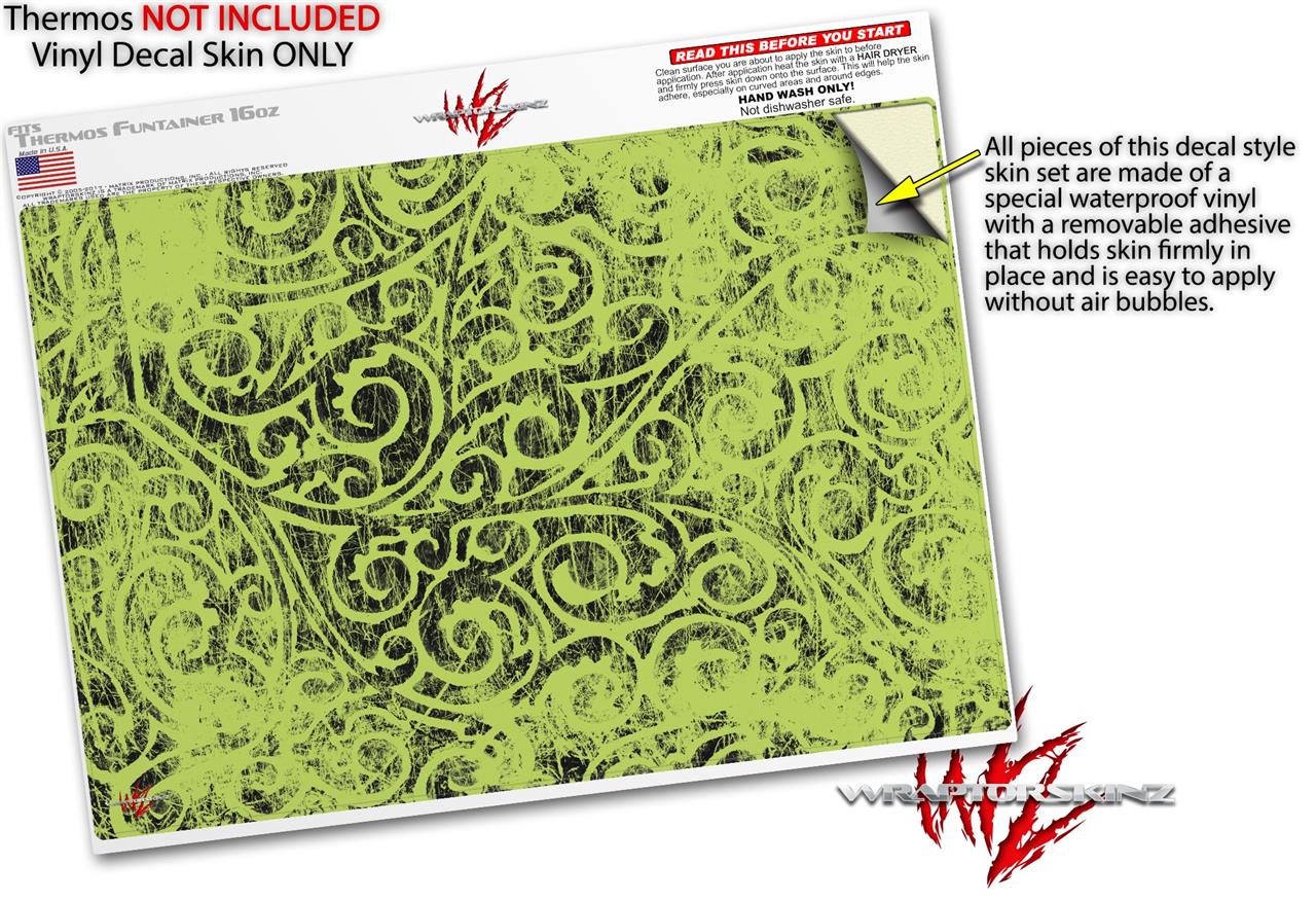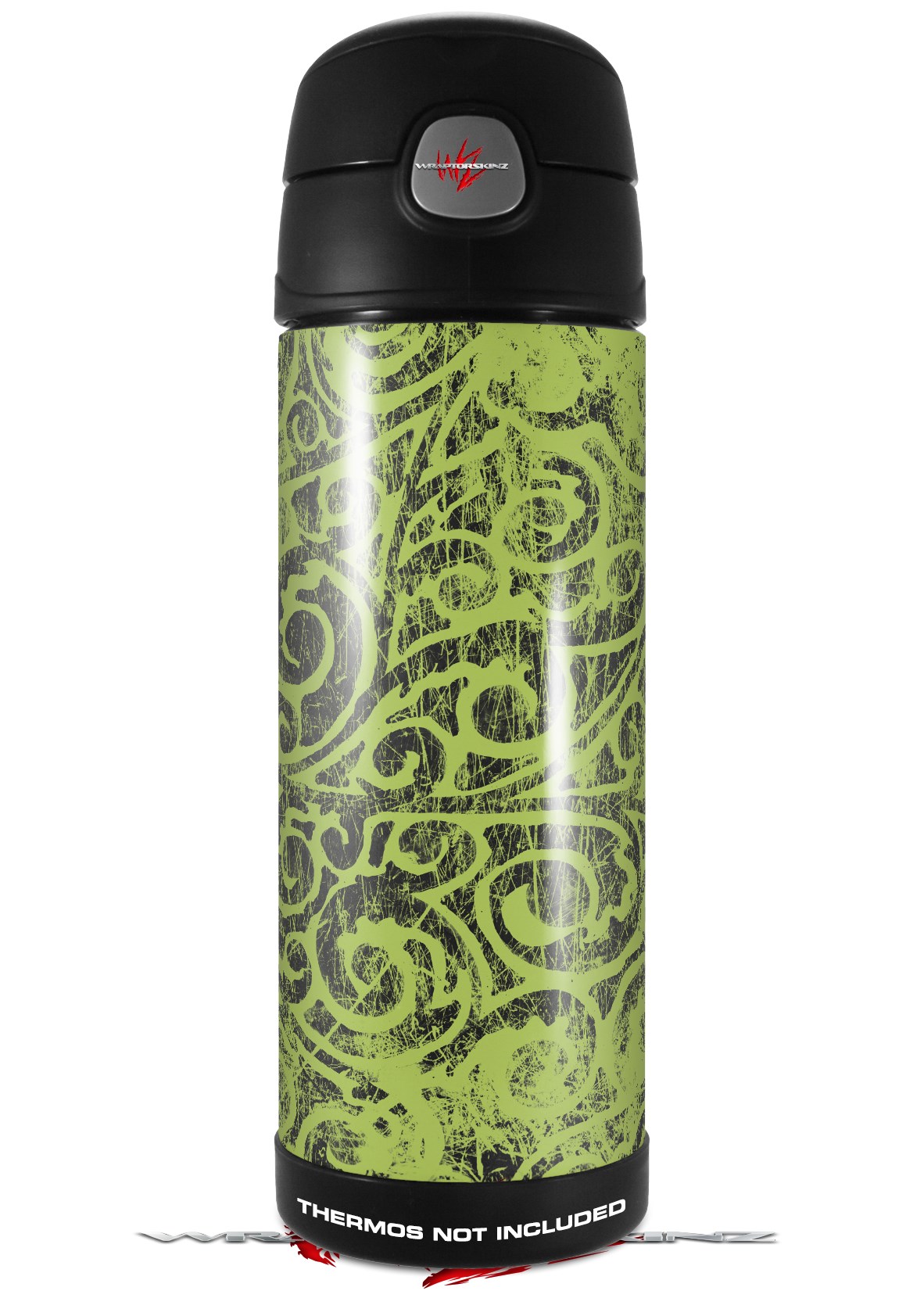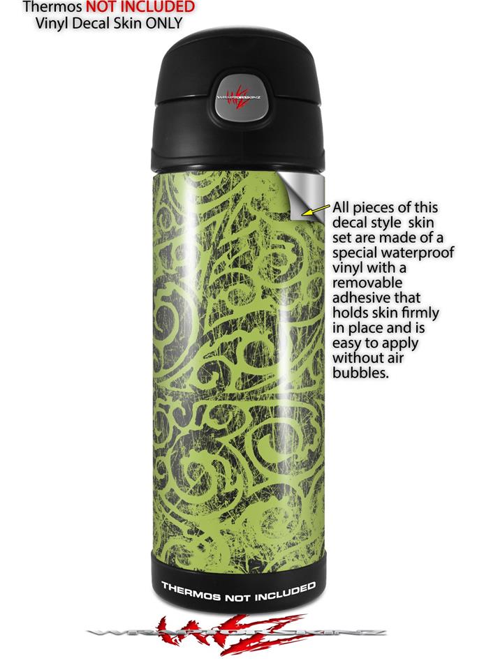 Skin Decal Wrap for Thermos Funtainer 16oz Bottle Folder Doodles Sage Green (BOTTLE NOT INCLUDED) by WraptorSkinz