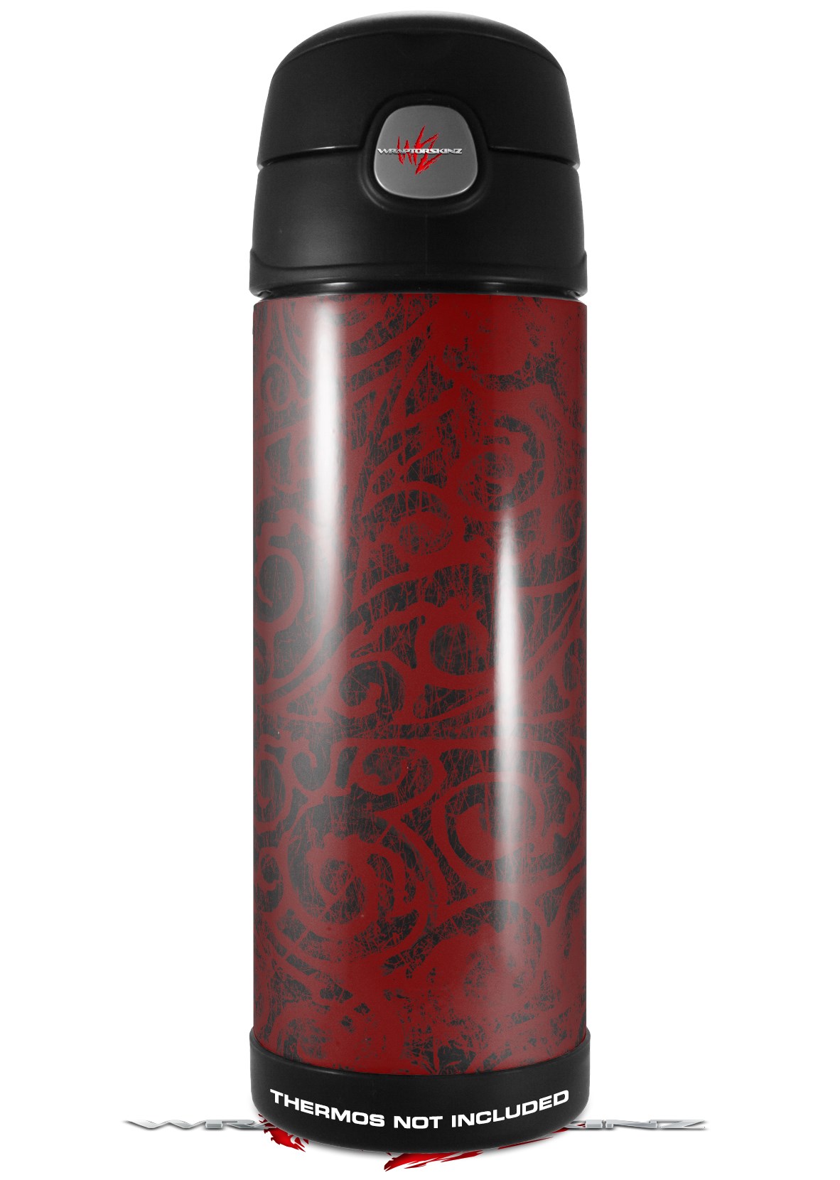 Skin Decal Wrap for Thermos Funtainer 16oz Bottle Folder Doodles Red Dark (BOTTLE NOT INCLUDED) by WraptorSkinz