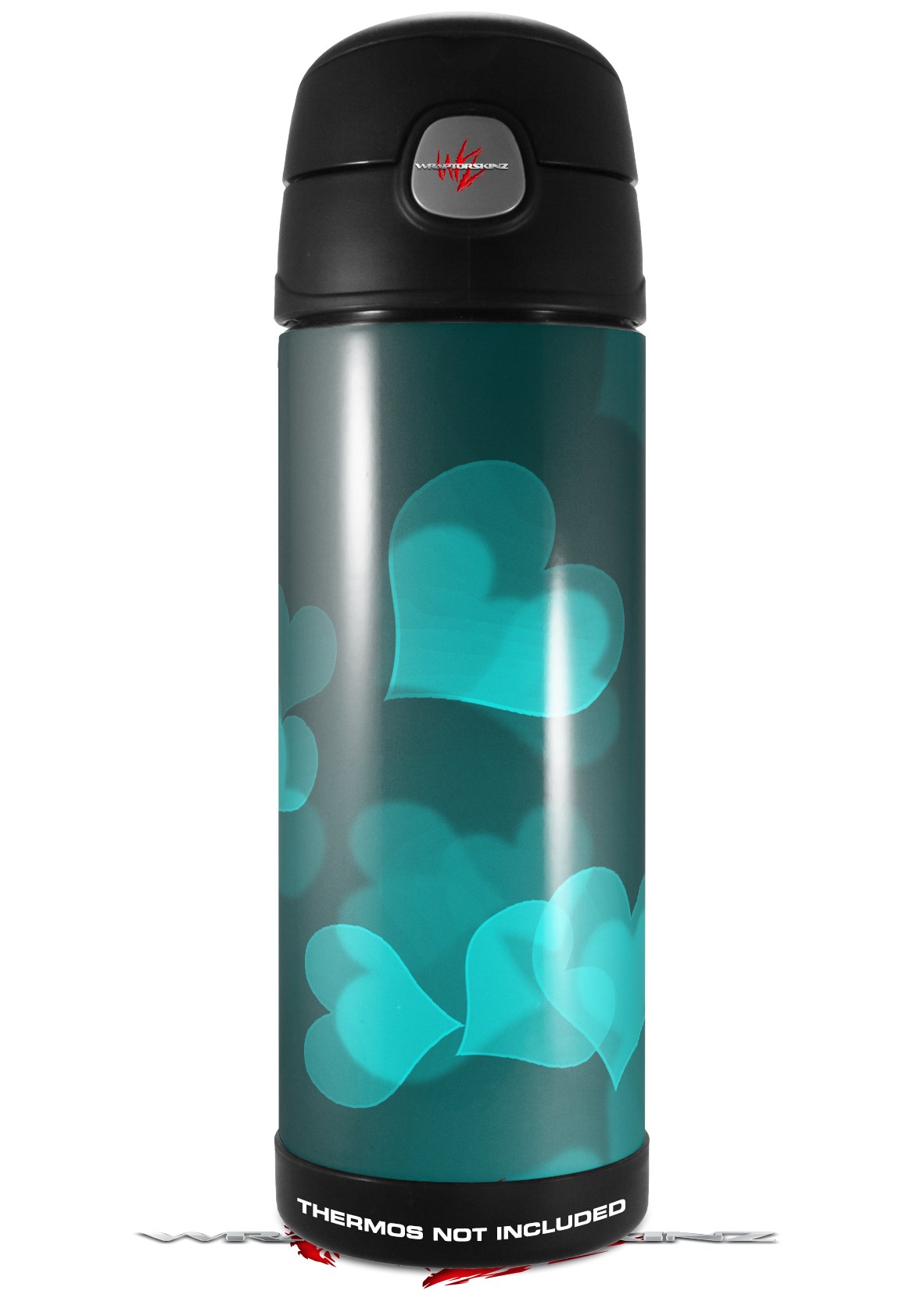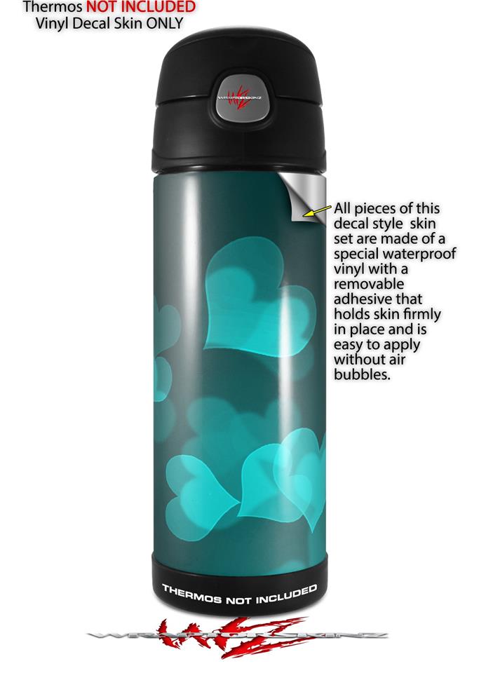 Skin Decal Wrap for Thermos Funtainer 16oz Bottle Bokeh Hearts Neon Teal (BOTTLE NOT INCLUDED) by WraptorSkinz