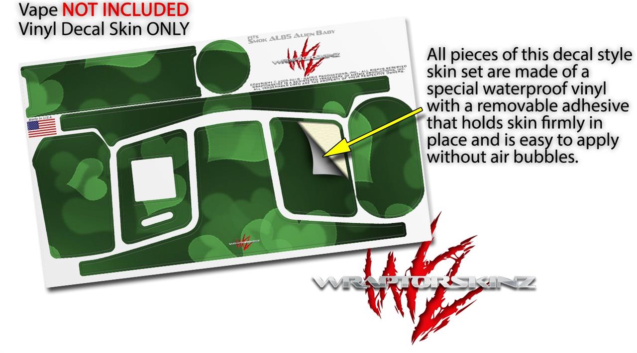 Skin Decal Wrap for Smok AL85 Alien Baby Bokeh Hearts Green VAPE NOT INCLUDED