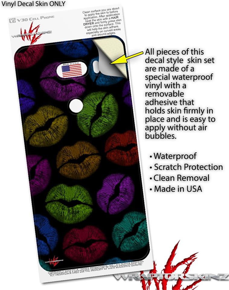 Skin Decal Wrap for LG V30 Rainbow Lips Black