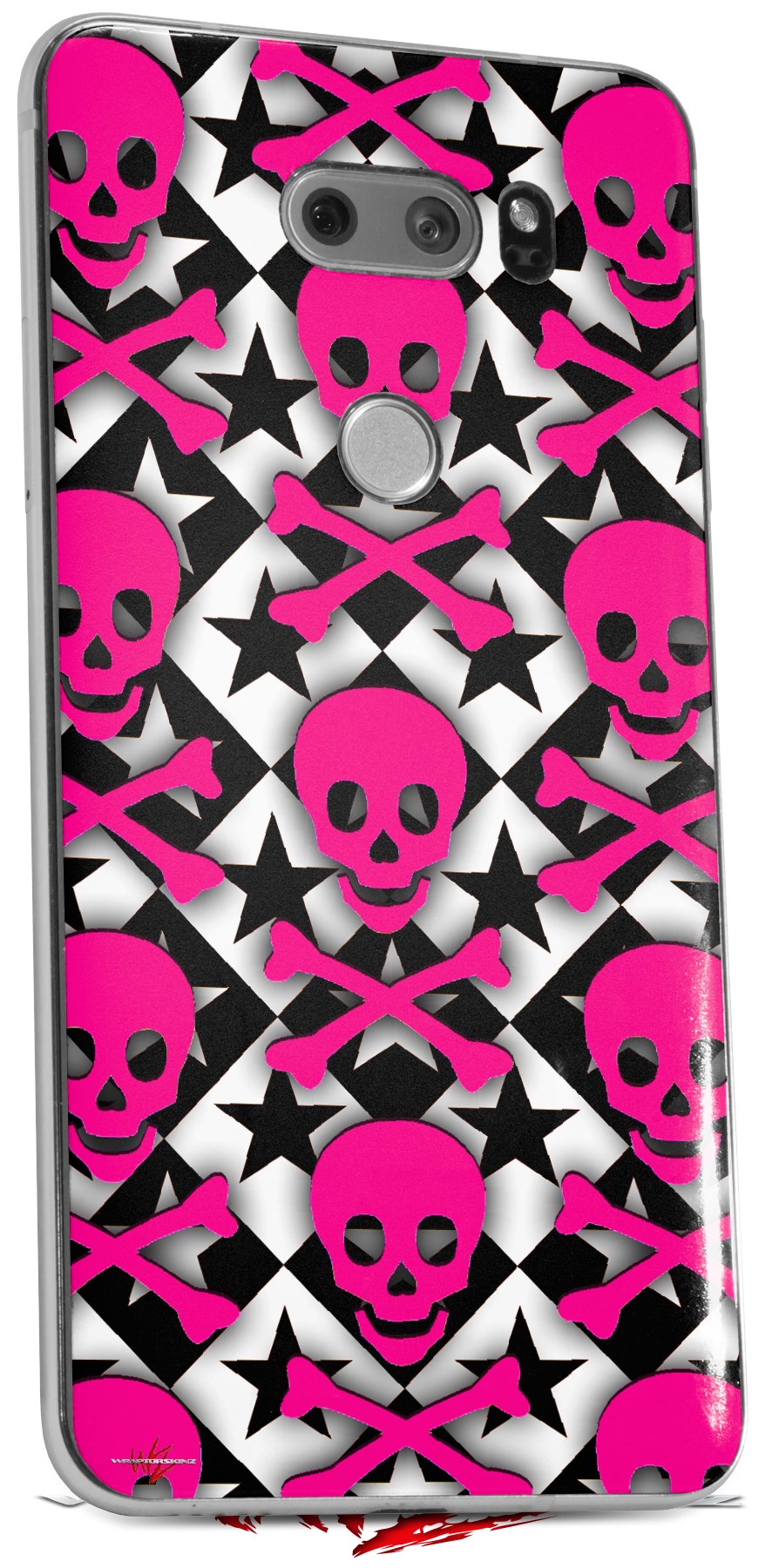 Skin Decal Wrap for LG V30 Pink Skulls and Stars