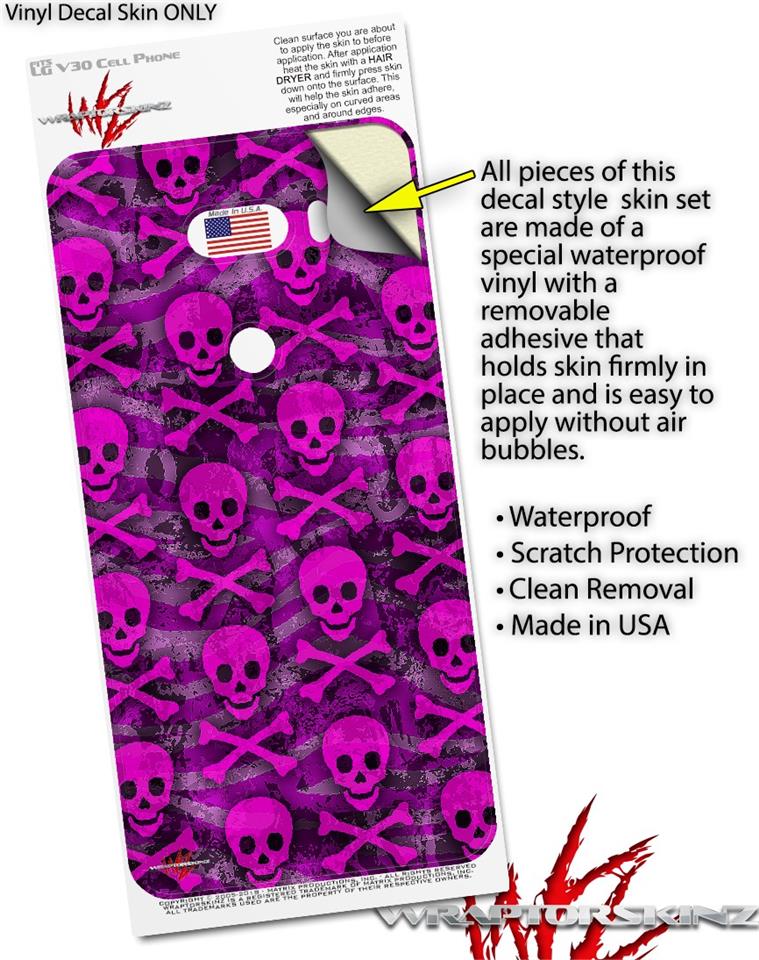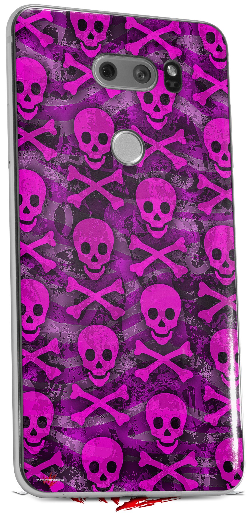Skin Decal Wrap for LG V30 Pink Skull Bones