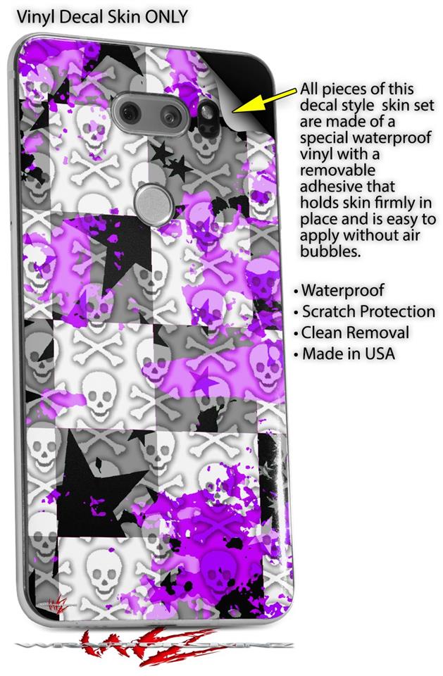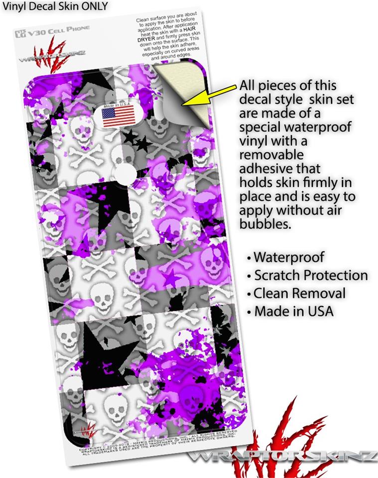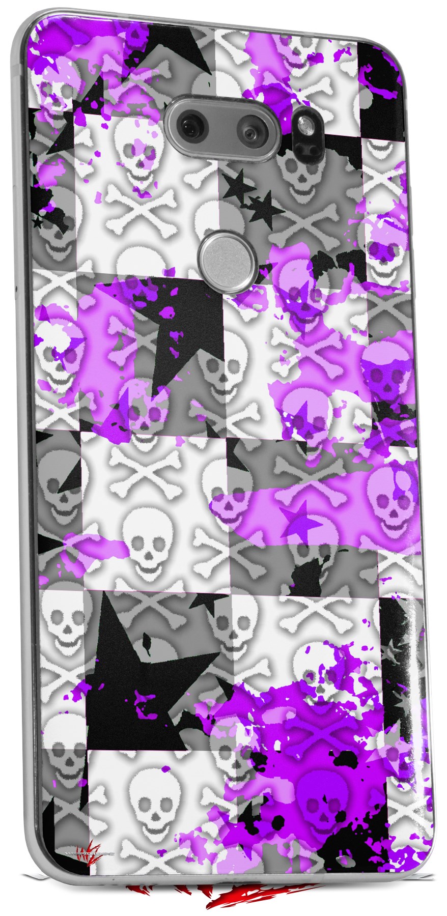 Skin Decal Wrap for LG V30 Purple Checker Skull Splatter