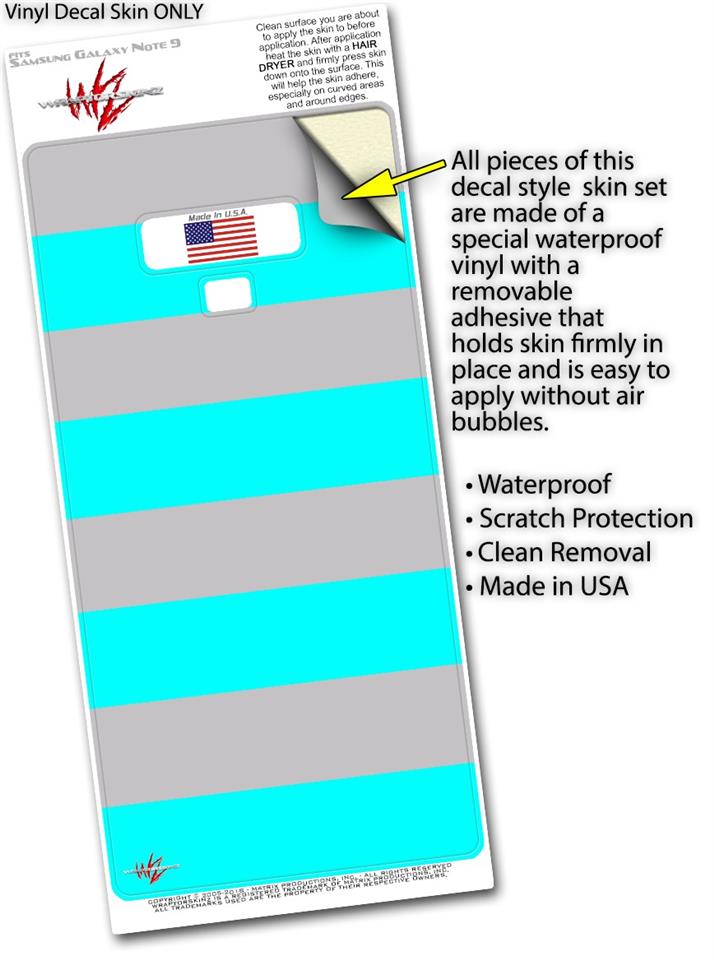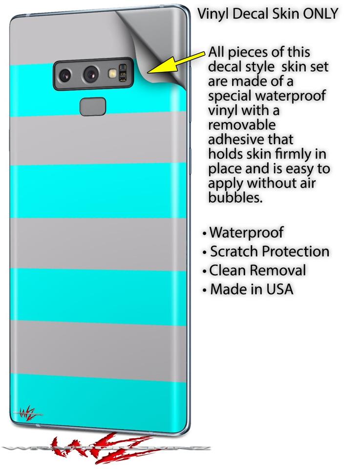Decal style Skin Wrap compatible with Samsung Galaxy Note 9 Psycho Stripes Neon Teal and Gray