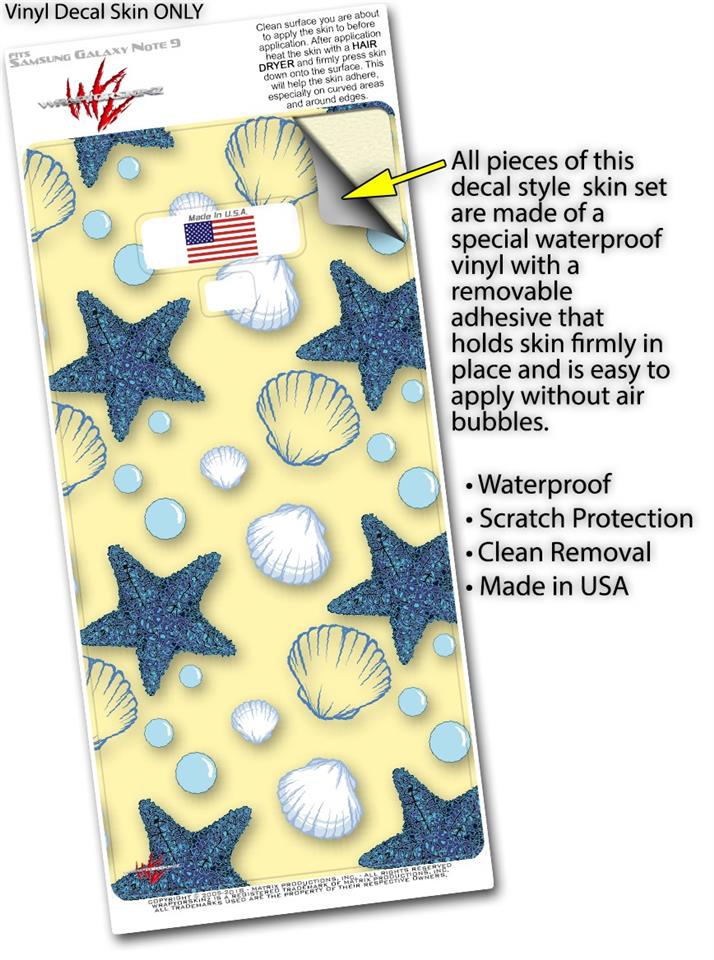 Decal style Skin Wrap compatible with Samsung Galaxy Note 9 Starfish and Sea Shells Yellow Sunshine