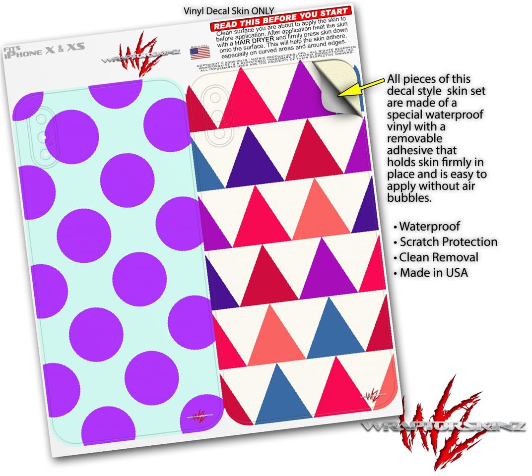 2 Decal style Skin Wraps set for Apple iPhone X and XS Kearas Polka Dots Purple And Blue