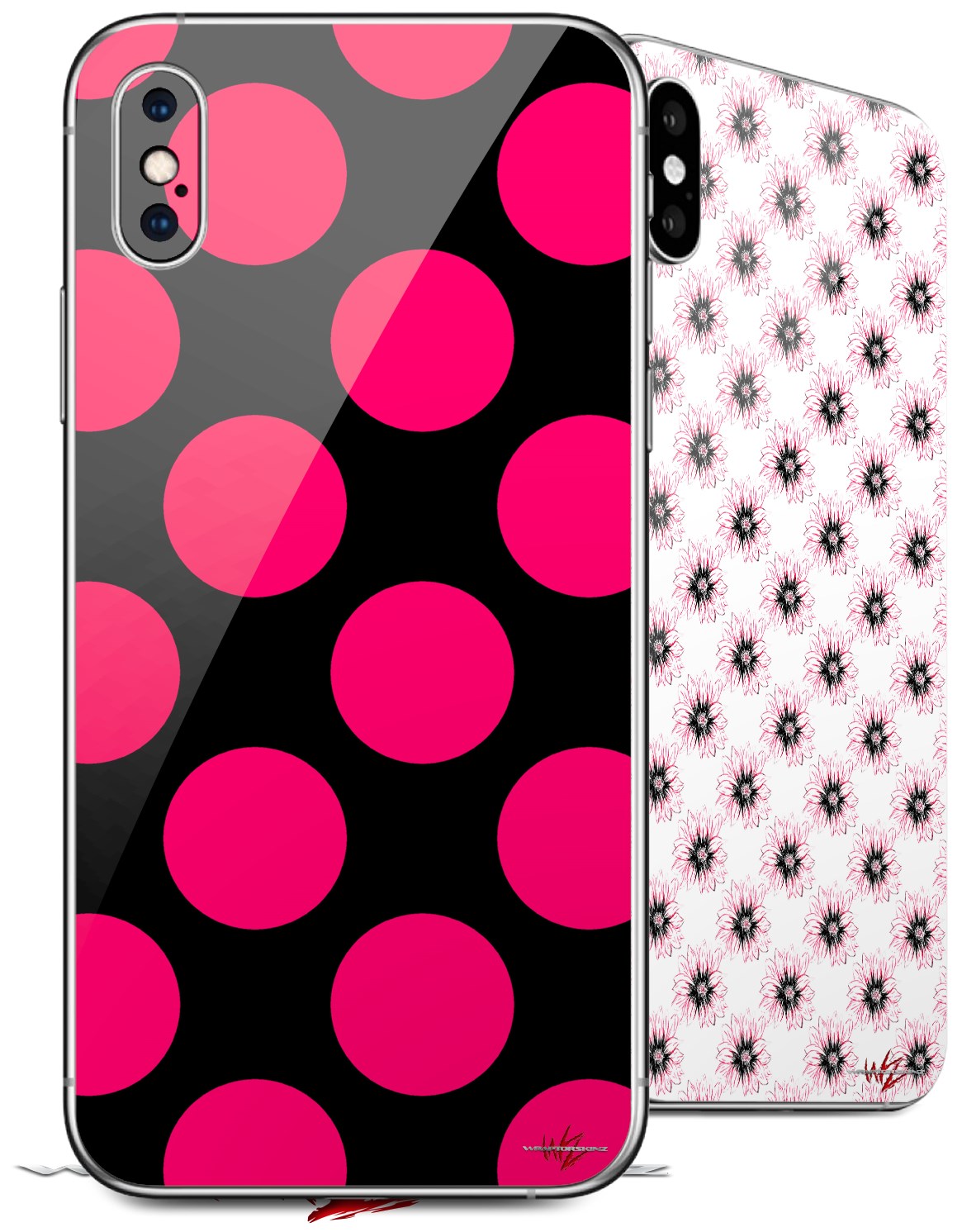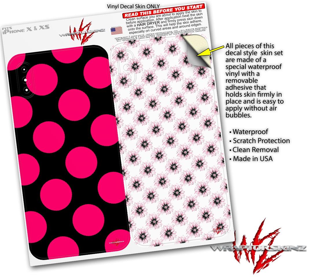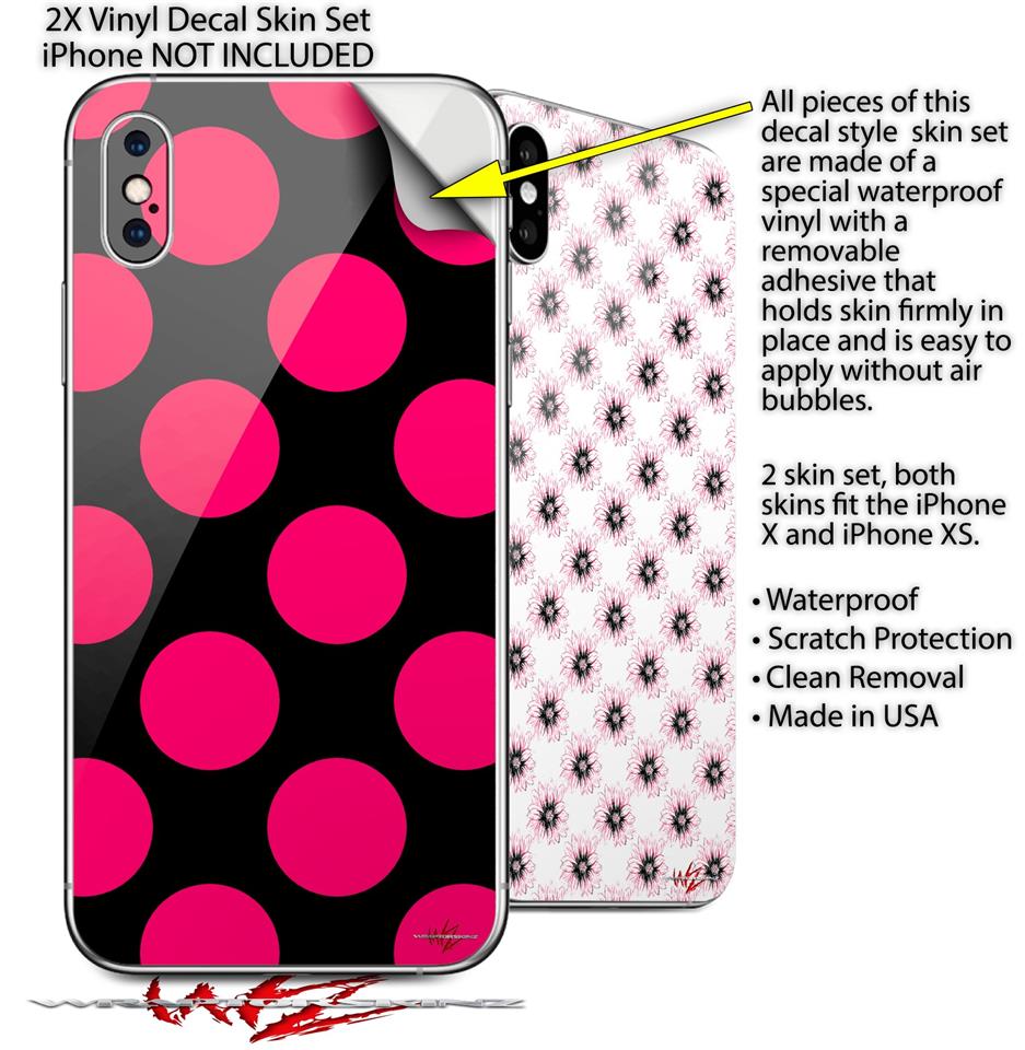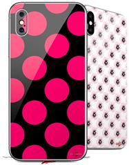 2 Decal style Skin Wraps set for Apple iPhone X and XS Kearas Polka Dots Pink On Black