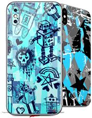 2 Decal style Skin Wraps set for Apple iPhone X and XS Scene Kid Sketches Blue