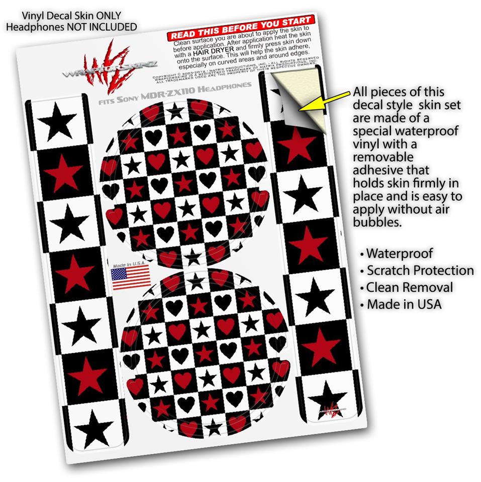 Decal style Skin Wrap for Sony MDR ZX110 Headphones Hearts and Stars Red (HEADPHONES NOT INCLUDED)