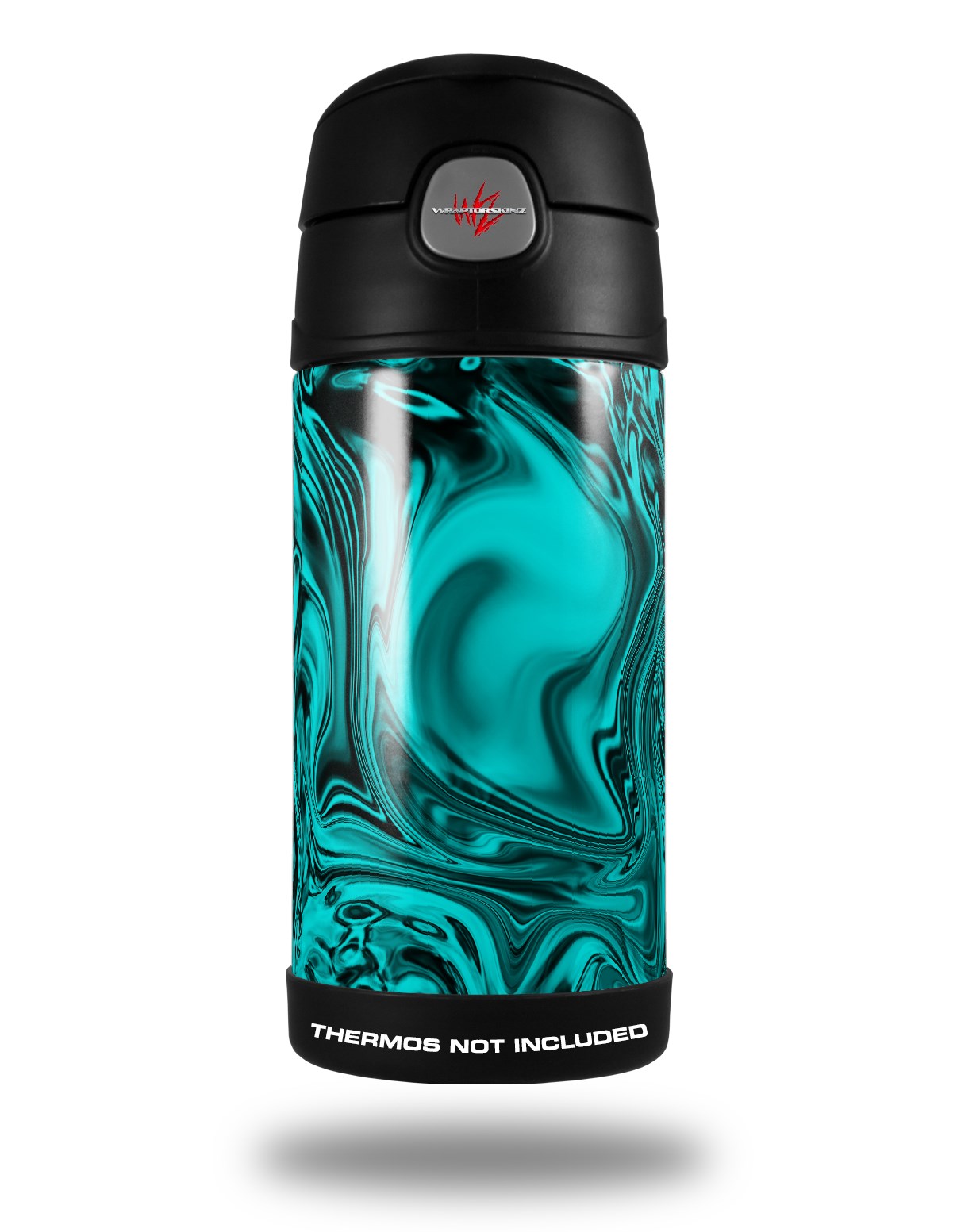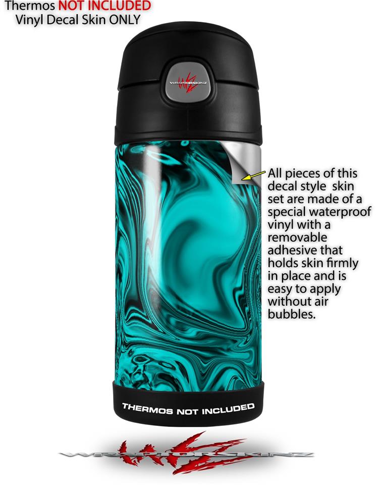 Skin Decal Wrap compatible with Thermos Funtainer 12oz Bottle Liquid Metal Chrome Neon Teal (BOTTLE NOT INCLUDED)