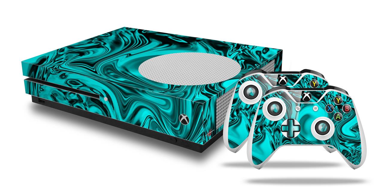 WraptorSkinz Decal Skin Wrap Set works with 2016 and newer XBOX One S Console and 2 Controllers Liquid Metal Chrome Neon Teal