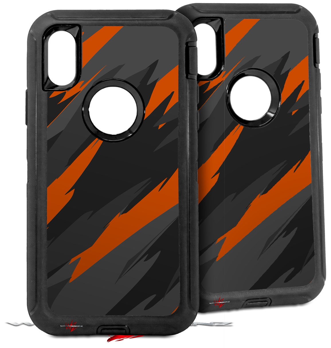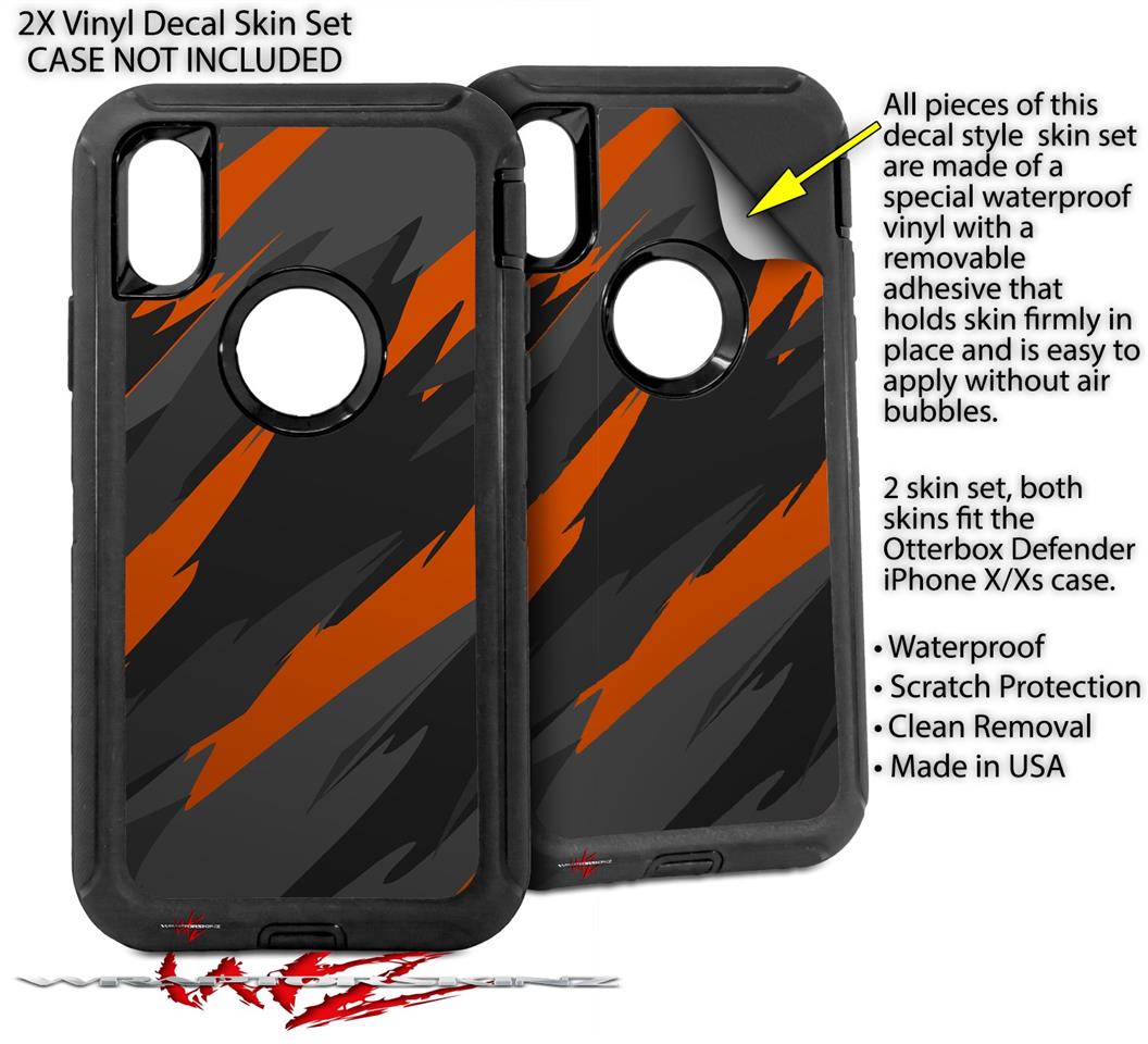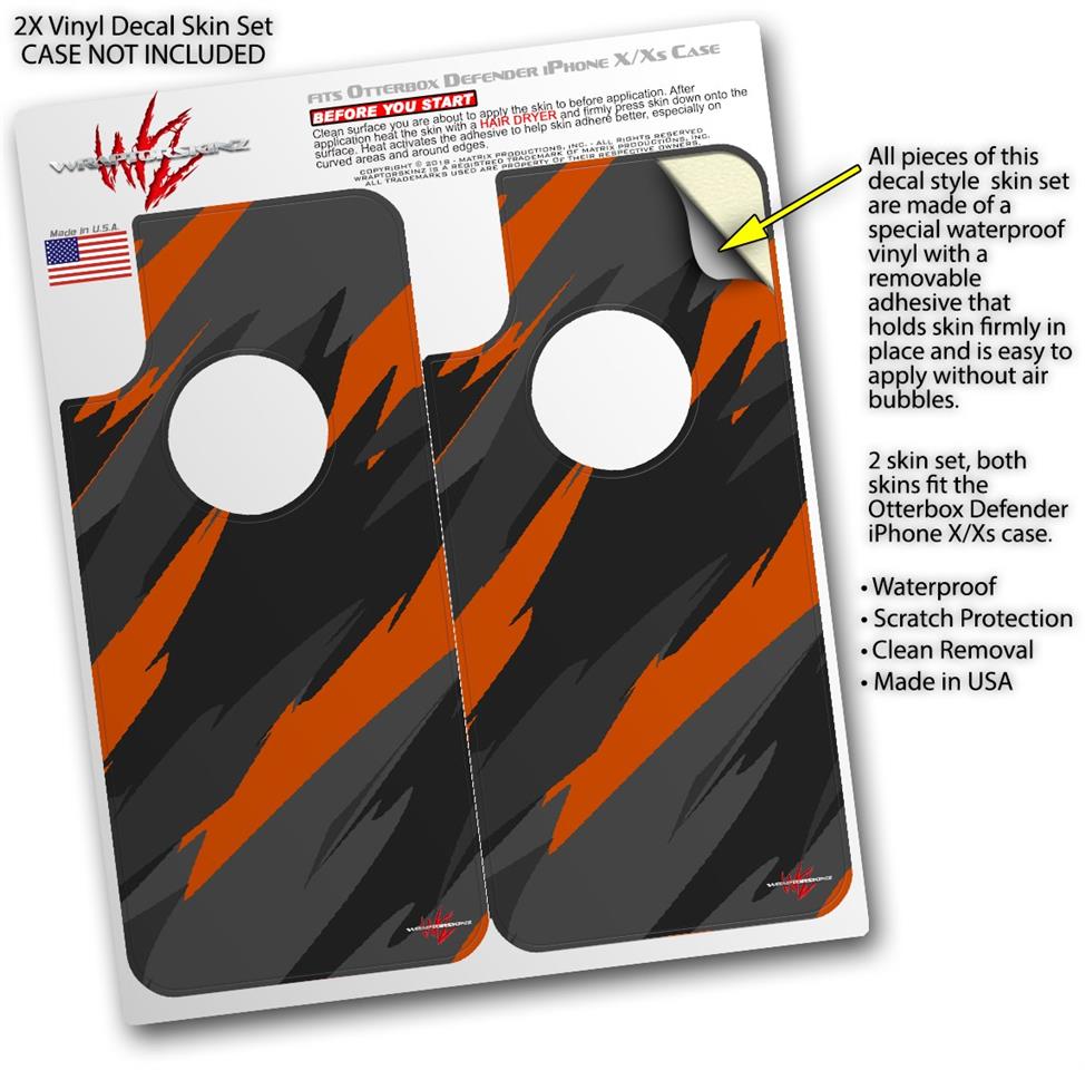 2x Decal style Skin Wrap Set compatible with Otterbox Defender iPhone X and Xs Case - Jagged Camo Burnt Orange (CASE NOT INCLUDED)