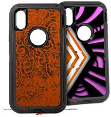 2x Decal style Skin Wrap Set compatible with Otterbox Defender iPhone X and Xs Case - Folder Doodles Burnt Orange (CASE NOT INCLUDED)