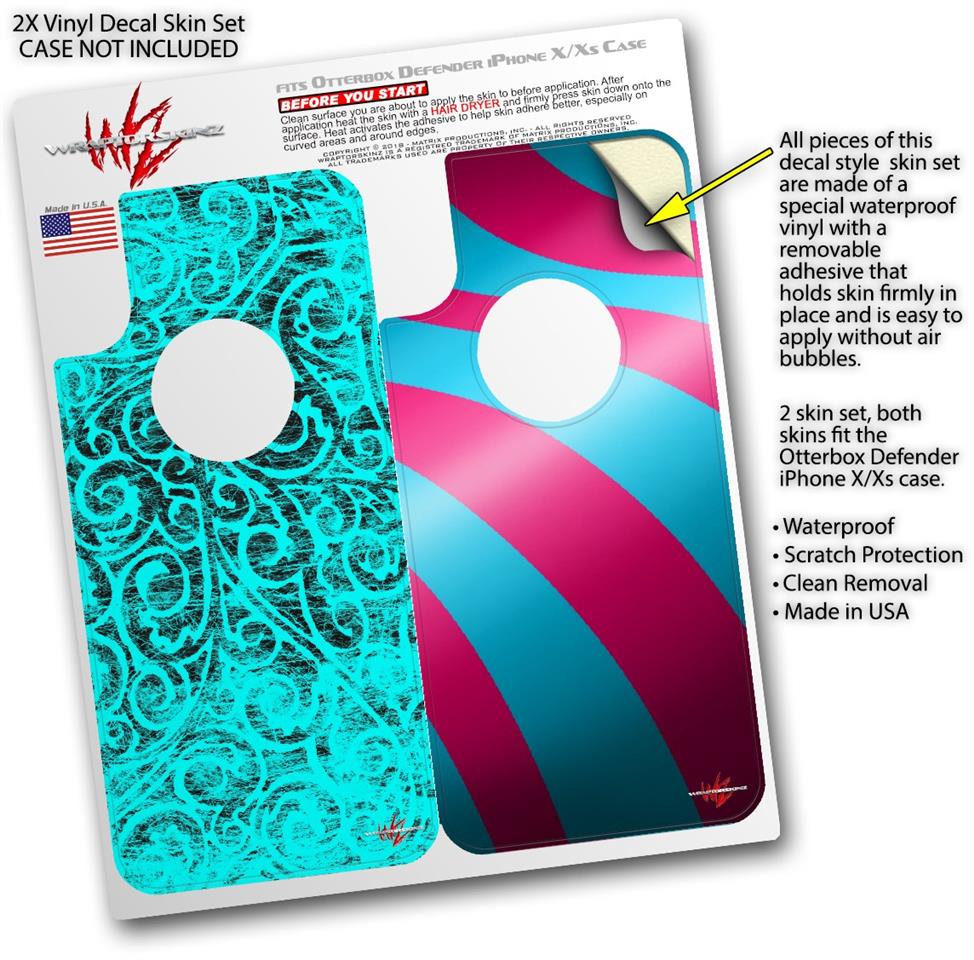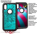 2x Decal style Skin Wrap Set compatible with Otterbox Defender iPhone X and Xs Case - Folder Doodles Neon Teal (CASE NOT INCLUDED)