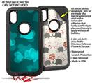 2x Decal style Skin Wrap Set compatible with Otterbox Defender iPhone X and Xs Case - Bokeh Hearts Neon Teal (CASE NOT INCLUDED)