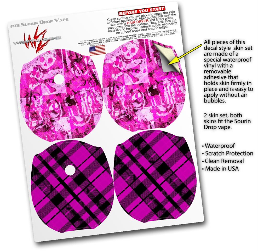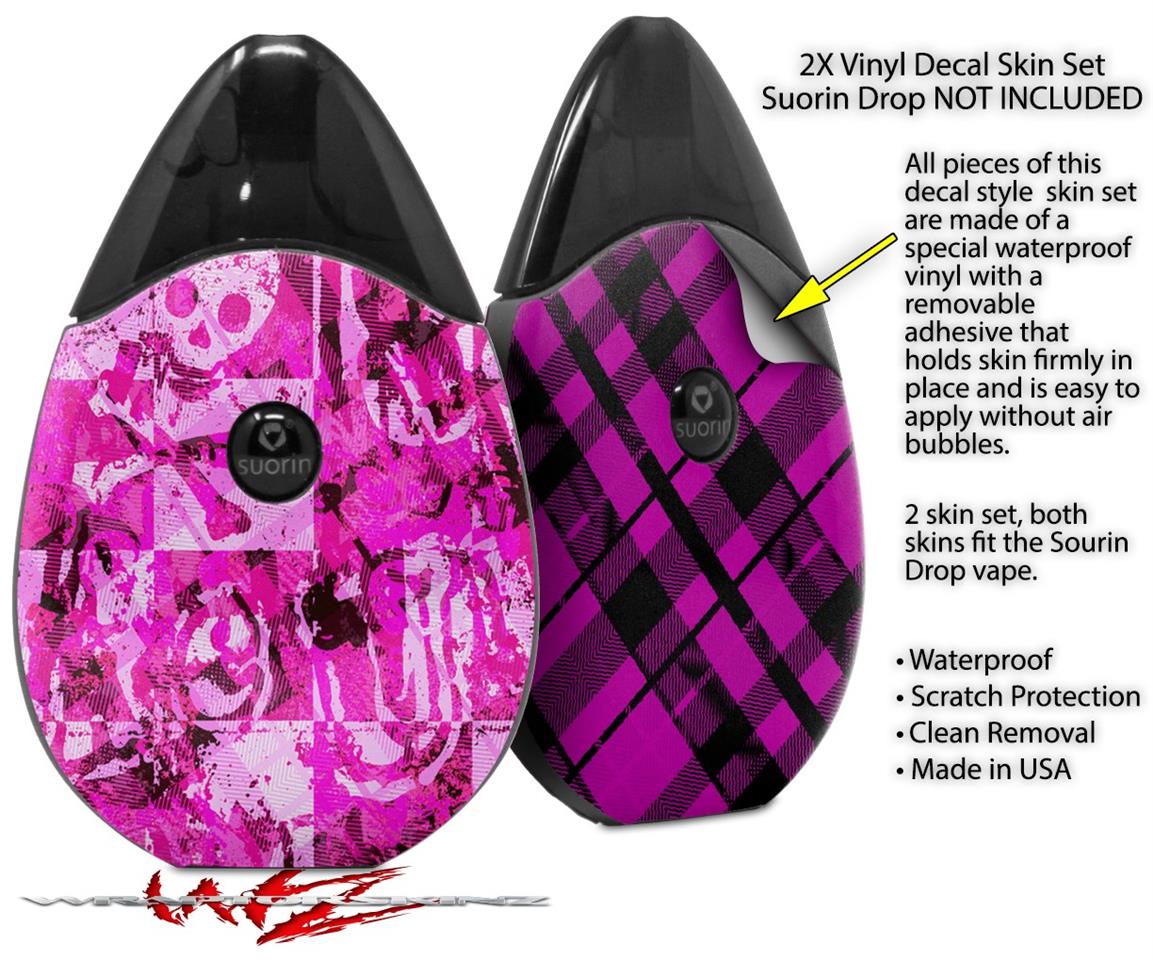 Skin Decal Wrap 2 Pack compatible with Suorin Drop Pink Plaid Graffiti VAPE NOT INCLUDED